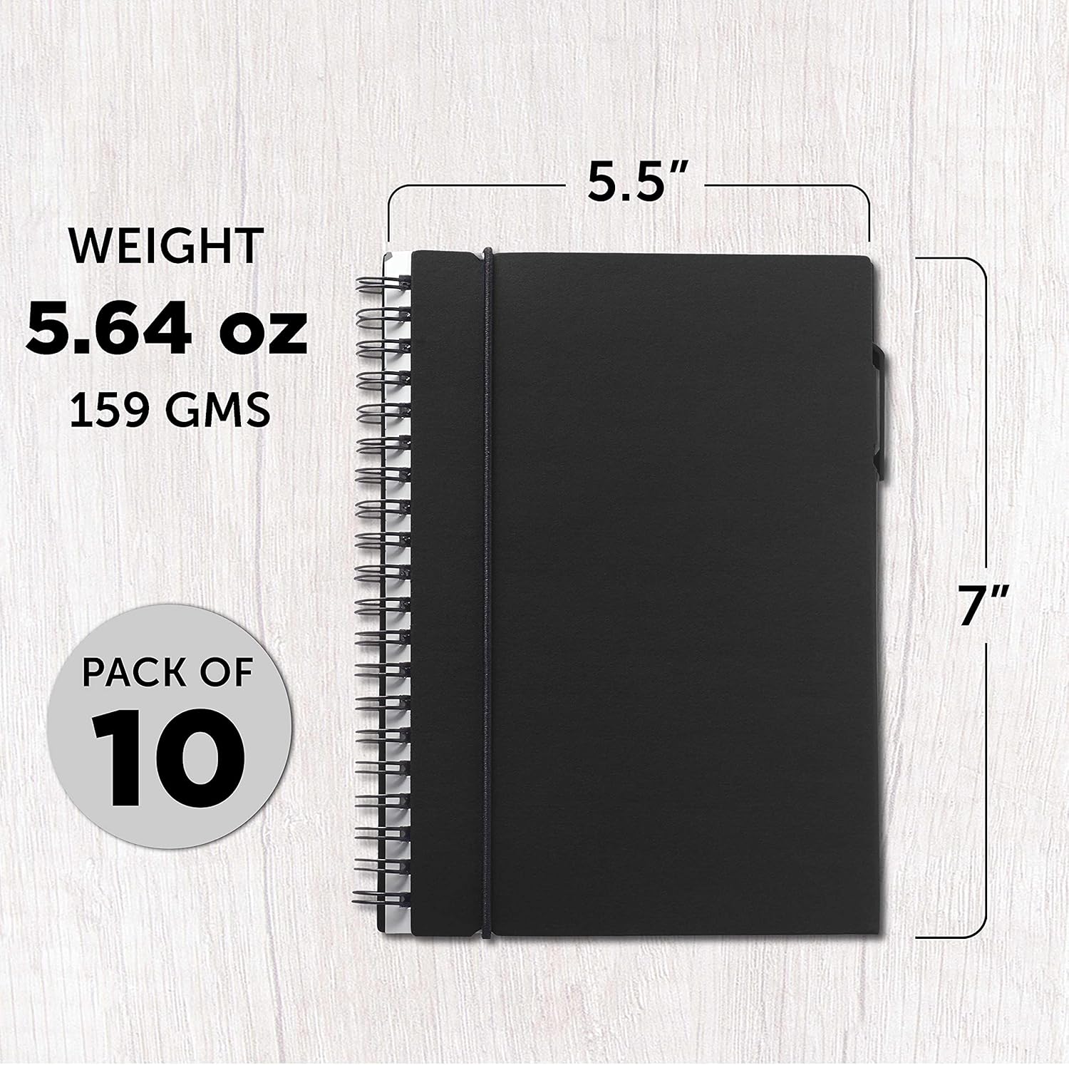 DISCOUNT PROMOS Spiral Notebooks with Elastic Closure Set of 10, Bulk Pack - Perfect for School, Office, Business and More - Black