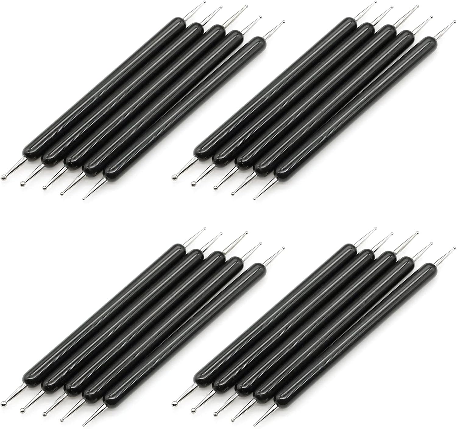 4 Set Embossing Stylus Double End Tracing Dotting Tool, 20 Pcs Ball Embossing Stylus Double End Tracing Dotting Tool for Pottery Clay Craft, Embossing Art (Black)