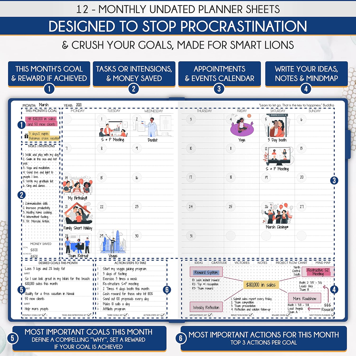 - GOAL SETTING PLANNER - Learn how to set big goals, be happy, and efficiently manage your time by adopting the same tactics used by millionaires to set and achieve them