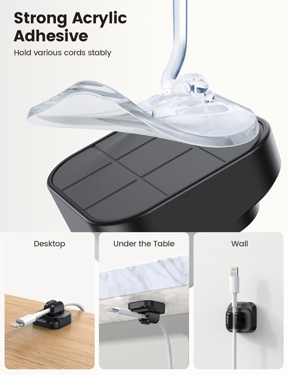 - 【One-handed Operation】With this wider diameter adhesive wire holder for desk, you can clamp, pull, and take the wire with one hand. Using cable organizer clips as table cable organizer in your bedroom, as a appliance power cord holder for cables in the kitchen and living room, flexible and easy to install wherever you want.