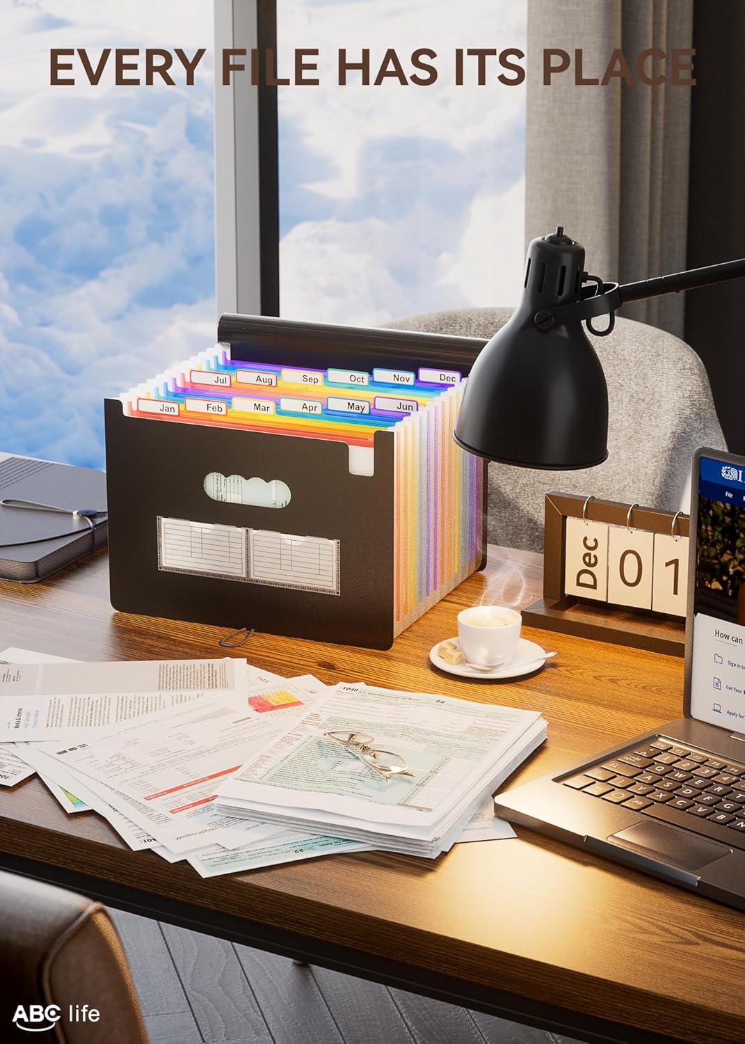 - 【12 Expanding File Folder】ABC life pockets accordian file organizer suitable for filing tax and storing important family documents. Product size is 13 "x 9.4"x 14", top and bottom are both expandable, For letter/A4 size files.
