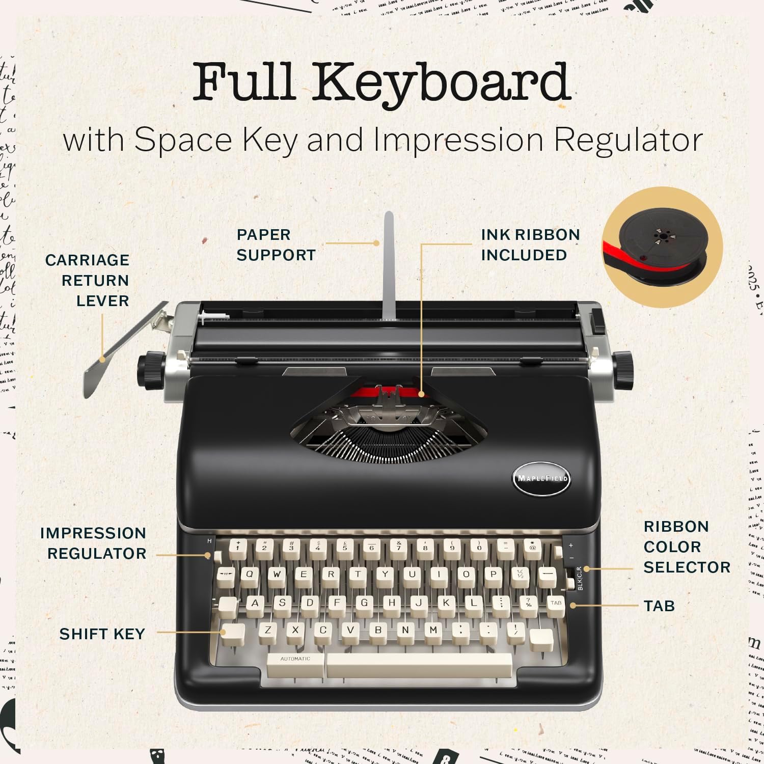- Vintage Writing Experience: Discover the charm of the Maplefield Vintage Manual Typewriter, an exquisite black metal typewriter that echoes the elegance of classic manual typewriters. Its tactile keys and mechanical design offer a unique typewriting machine experience