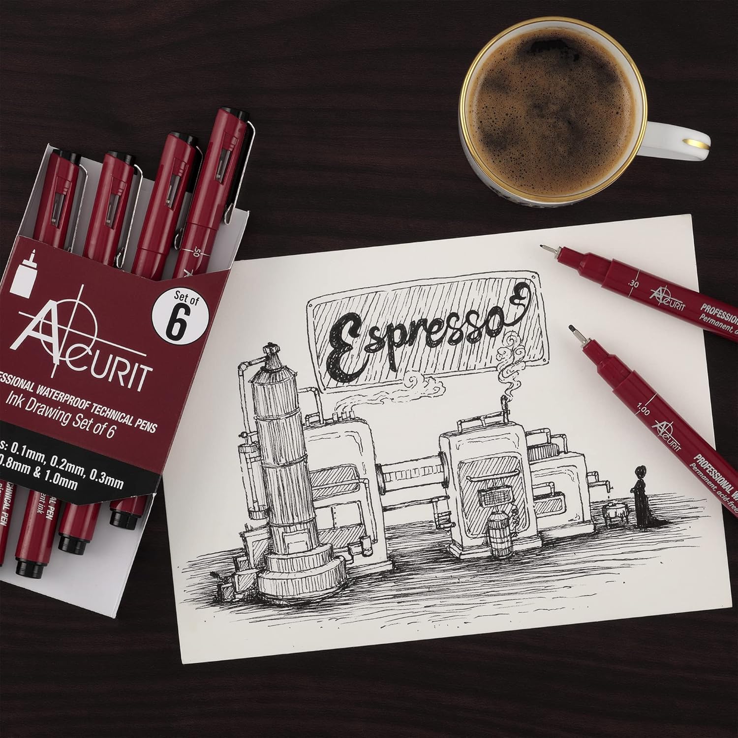 - RICH INK: Each Acurit Waterproof Technical Pen has rich blank ink that is Perfect For permanent Application, is lightfast and acid-free, and will give a Professional and detailed look to your artwork