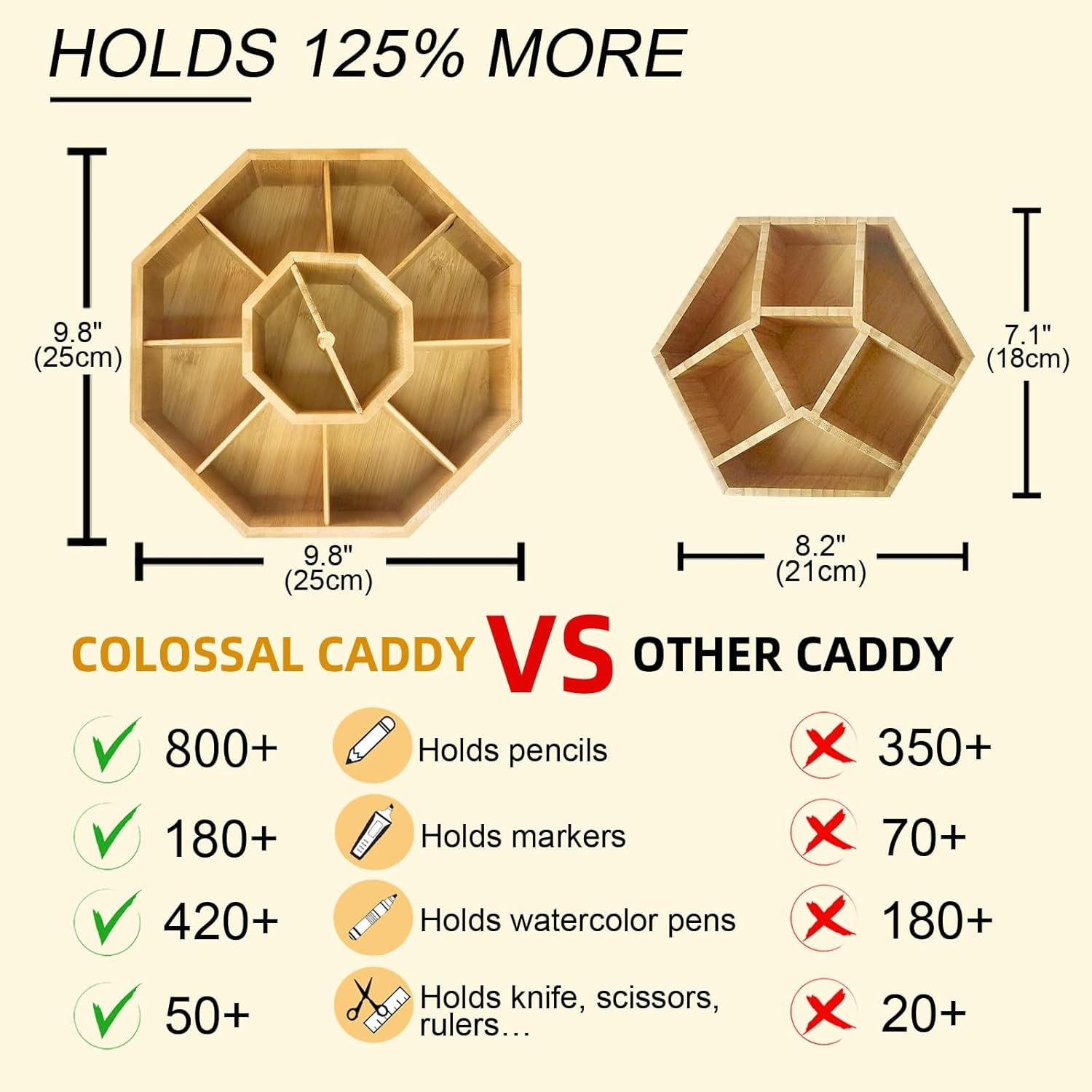 walowalo Bamboo Rotating Art Supply Organizer Holds 800+ Pencils Spinning Crayon Marker Pen Holder for Desk Brush Storage for Office School Classroom Organization Stationary (Larger Version)