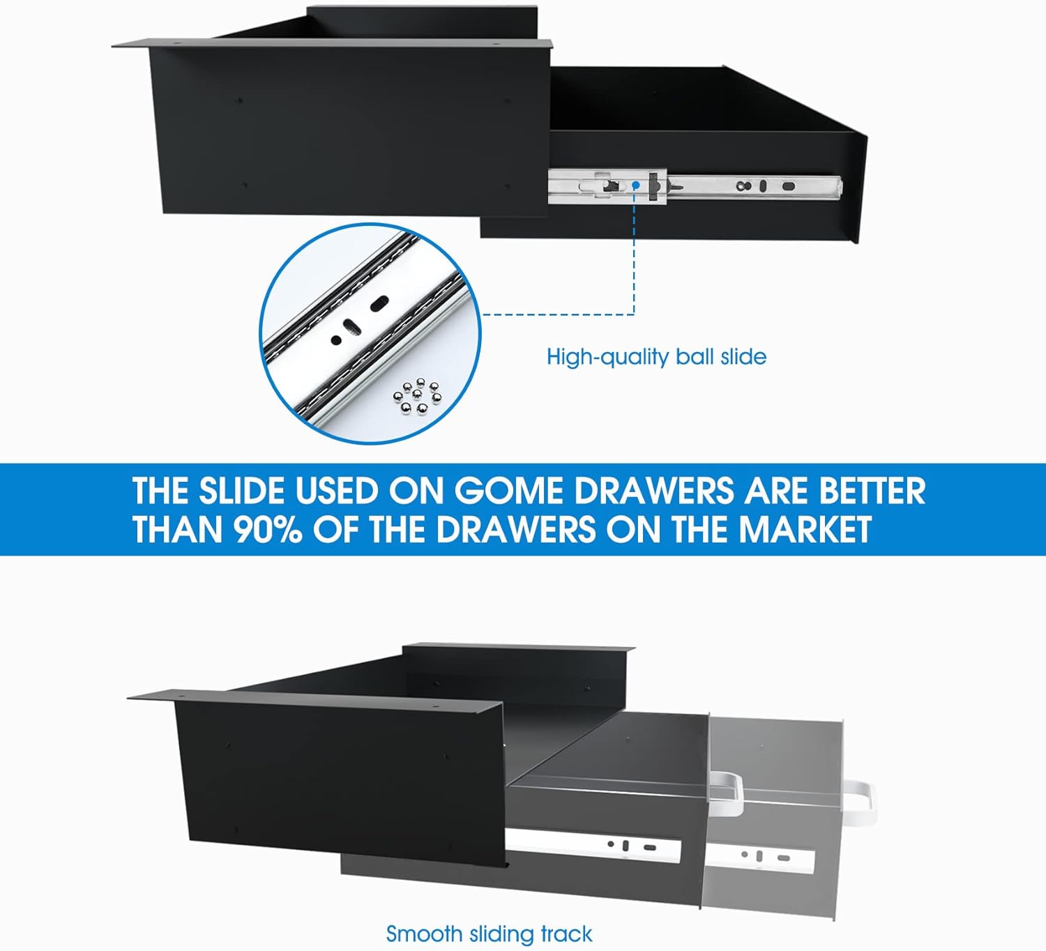 GOME Under Desk Drawer Storage with Laptop/Book/Folders Shelf, Double Layer Easy Slide-Out Undermount Drawer Organizer with Ball Sliding Track for Home Office Sit-Stand Workstation