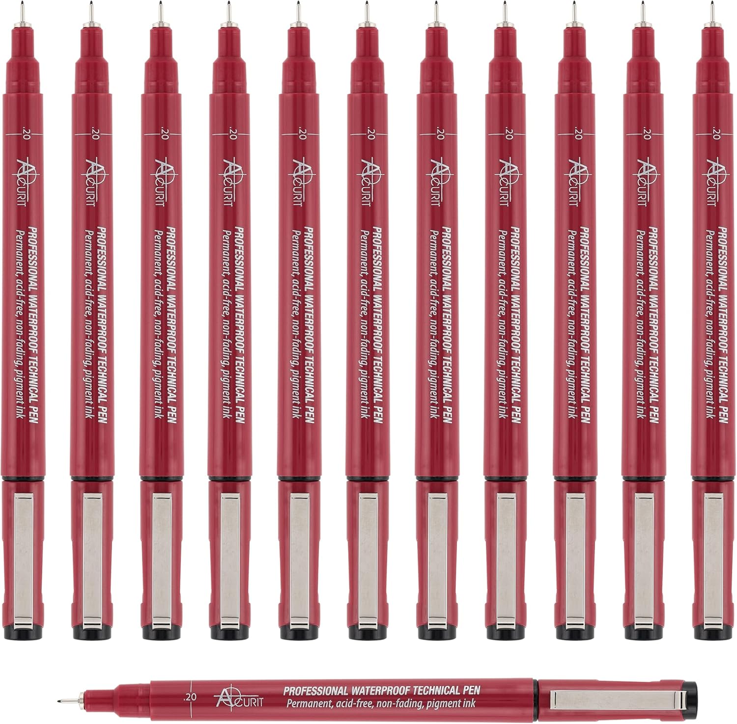 Acurit Waterproof Technical Pens - Professional Waterproof Technical Pen, Rich Blank Ink, Acid-Free, Light Fast, for Sketching, Drawing, Calligraphy, & More! - [12-Pack - 0.20mm]
