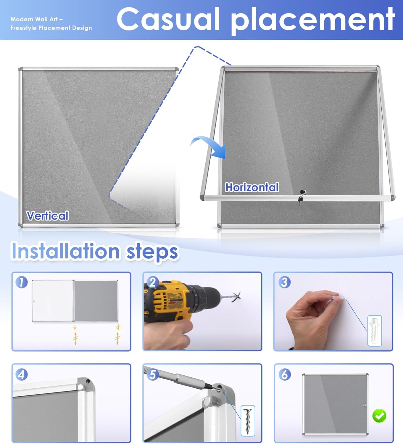 - Versatile Use —Can be used for a variety of purposes, including posting announcements, displaying artwork or photos, and presenting information for public viewing.With a simple and intuitive design ,it's convenient to post and update.