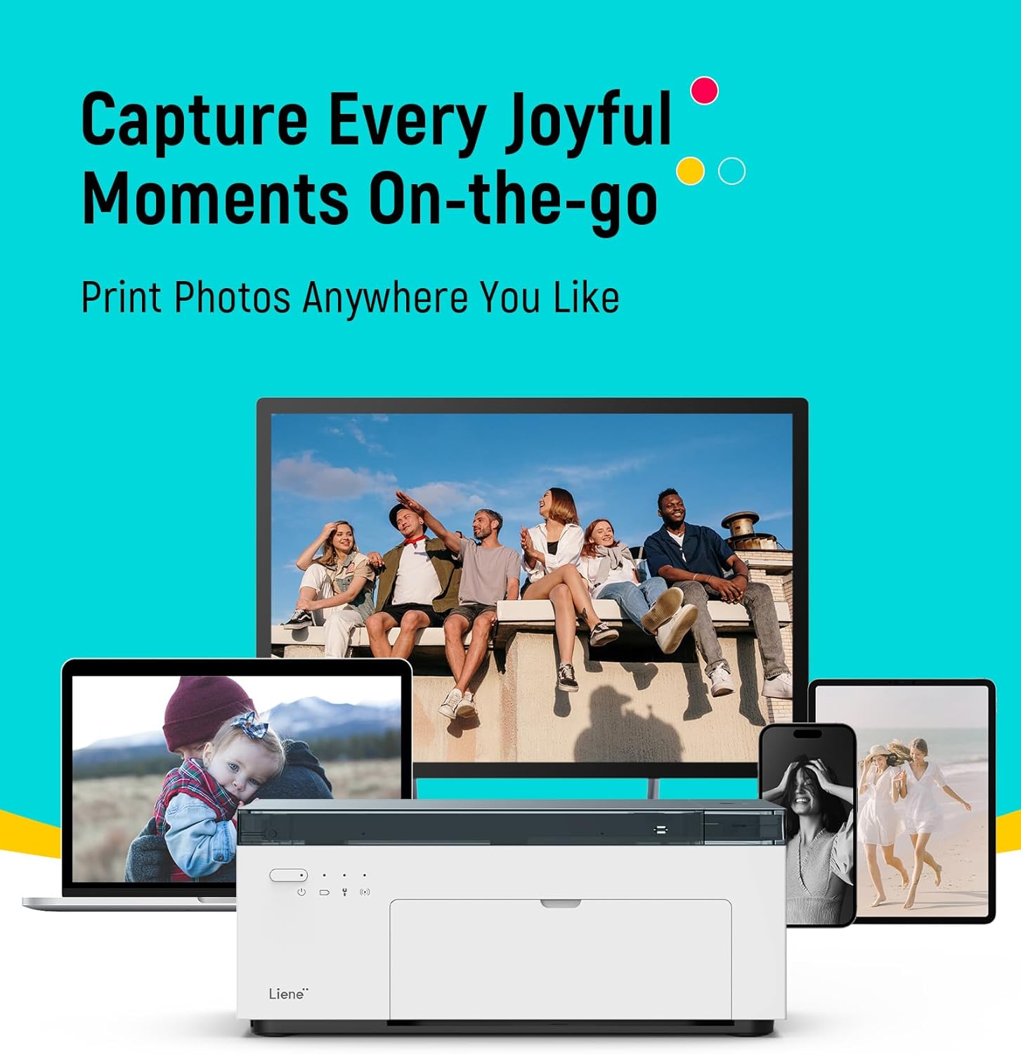 - Rechargeable Built-in Battery Edition - Looking for a travel-friendly photo printer 4x6? This Liene portable photo printer is your best choice. In addition to connecting to the power cord for printing, this rechargeable wireless picture printer can do the job without being plugged in (40 prints per charge). Whether recording your babyโs smile, travel moments or celebration with friends, the Liene photo printer 4x6 will keep the most precious memories anytime, anywhere!