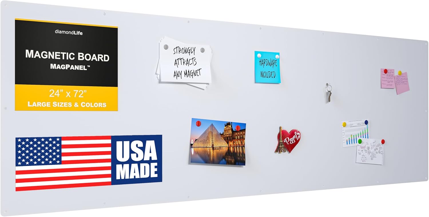 Diamond Life Magnetic Board - Memo & Vision Board for Home, Office, and Classroom - Magnet Board for Kids - Pre-drilled Mounting Screws Included (White 24"x72")