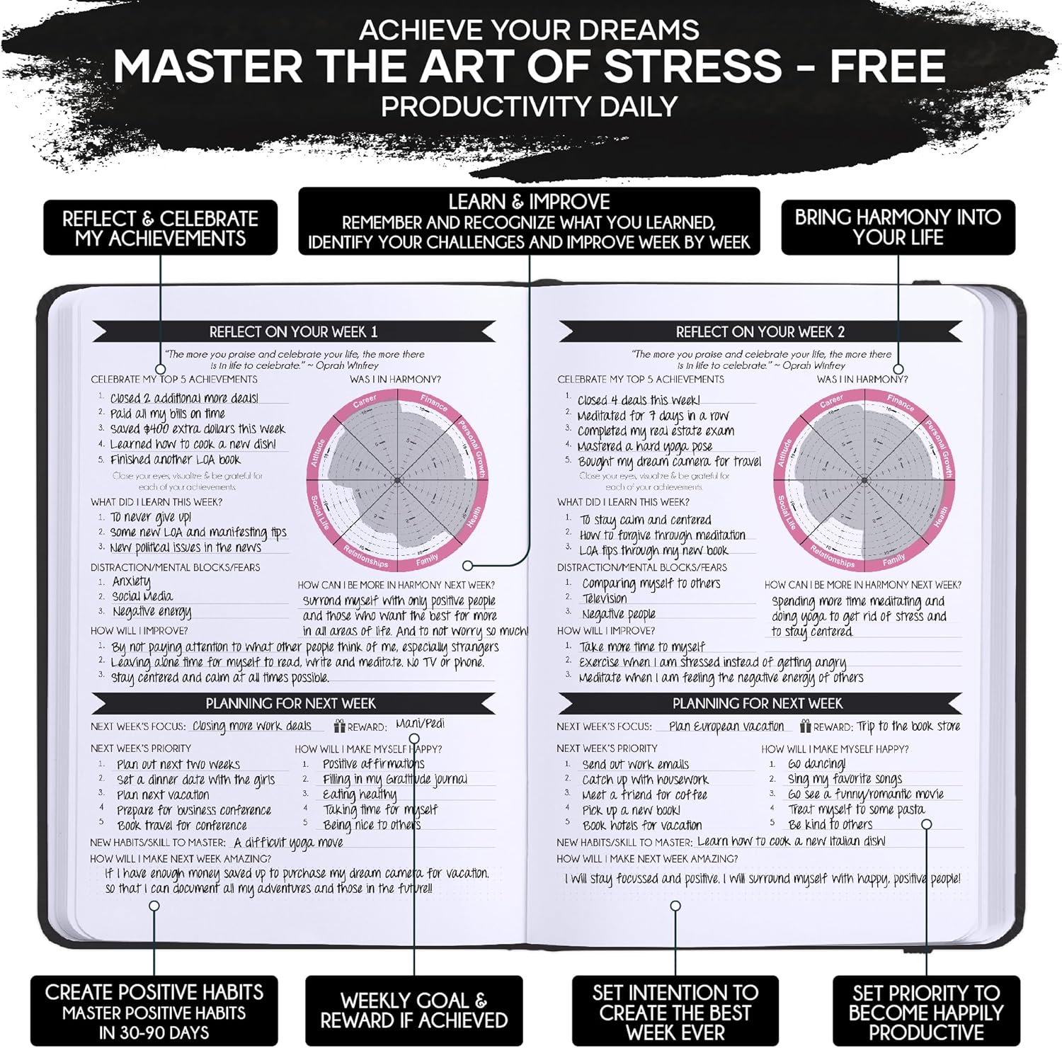 - BUILT STRONG FOR DAILY LIFE & GUARANTEED HAPPINESS β Crafted to withstand the demands of everyday life, this deluxe, eco-friendly planner blends durability with elegance. Its undated daily pages empower you to begin each day with gratitude and positivity, set achievable goals, and track your journey toward personal growth. Inspirational quotes keep you motivated, making it a perfect mindfulness tool for stress relief and unlocking your potential for a joyful, fulfilling life.