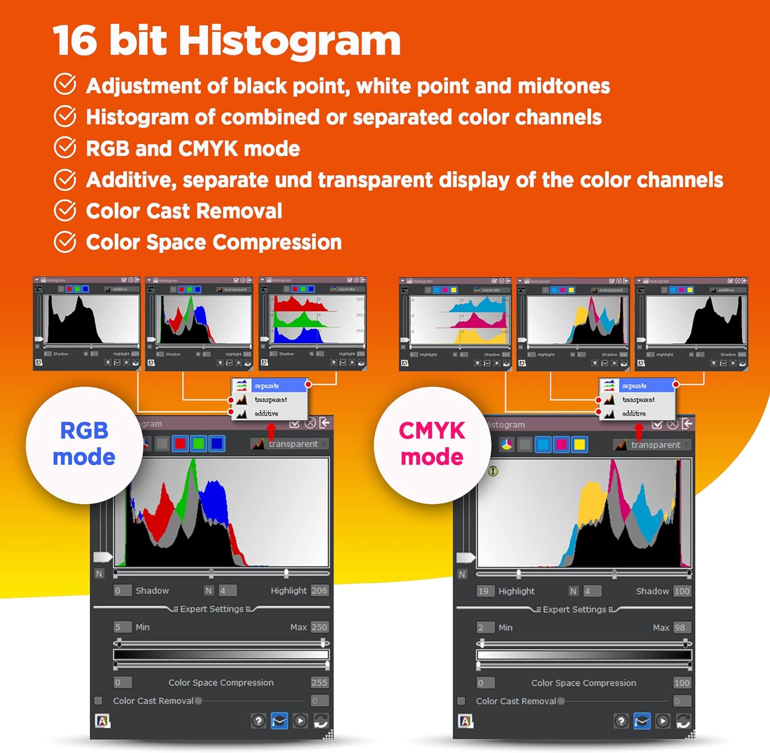 - [New Algorithms] SilverFast 9 with new algorithms eliminated the boundaries of film and digital image; successfully optimized the image result by built-in infrared, iSRD, HDRi, 16-bit Histogram, Multi-Exposure or NegaFix.