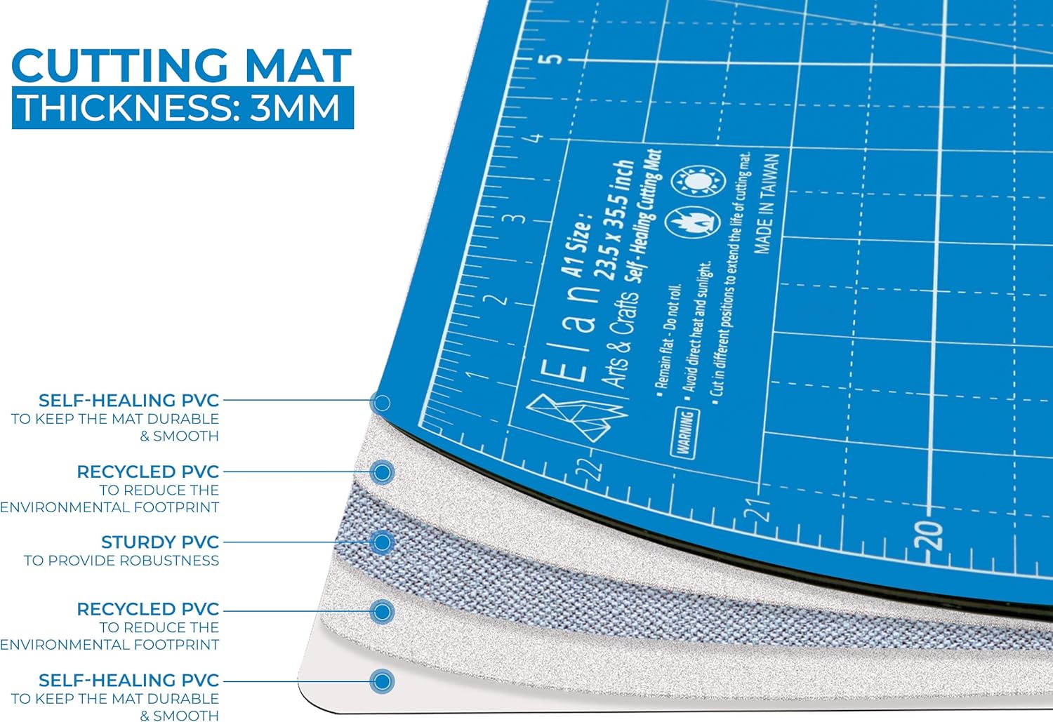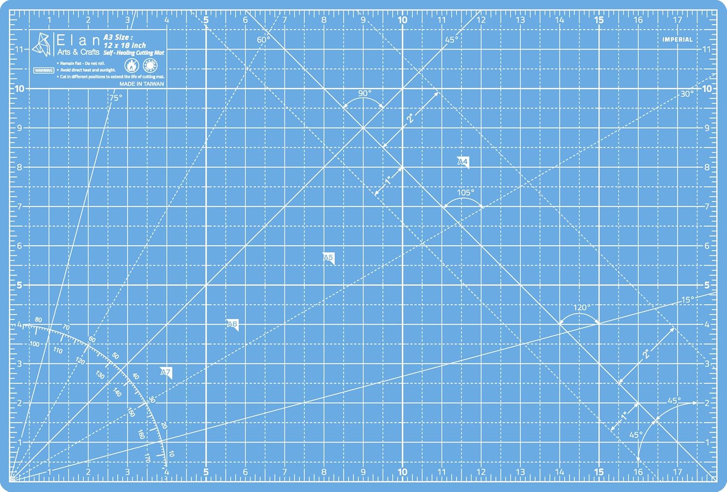 - COLOR & SIZE - Elan cutting mat blue has two different tones of blue. On one side it is light blue and the other side is a bit darker blue. Elan cutting mats are available with a metric grid and an imperial grid for sizes A0, A1, A2, A3, A4.