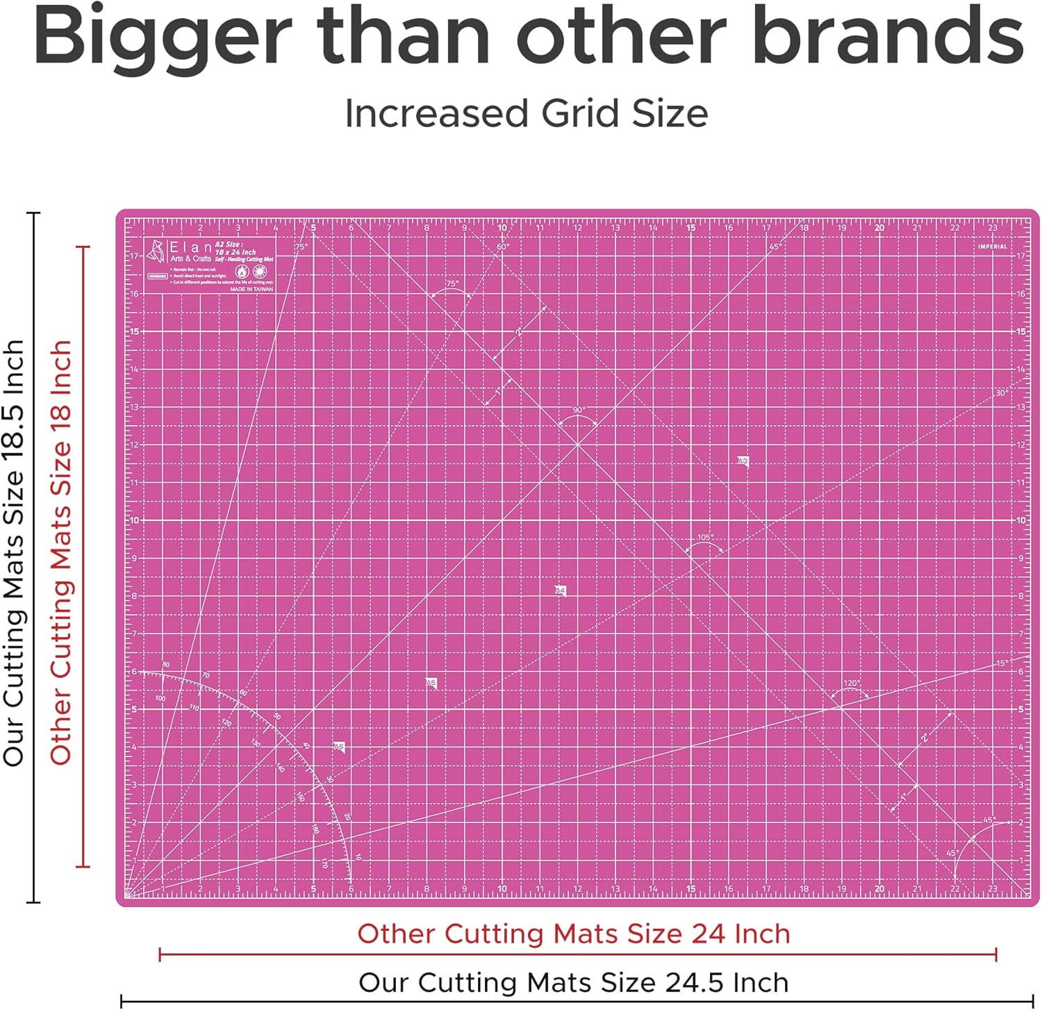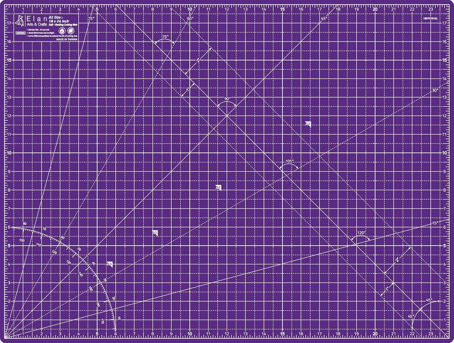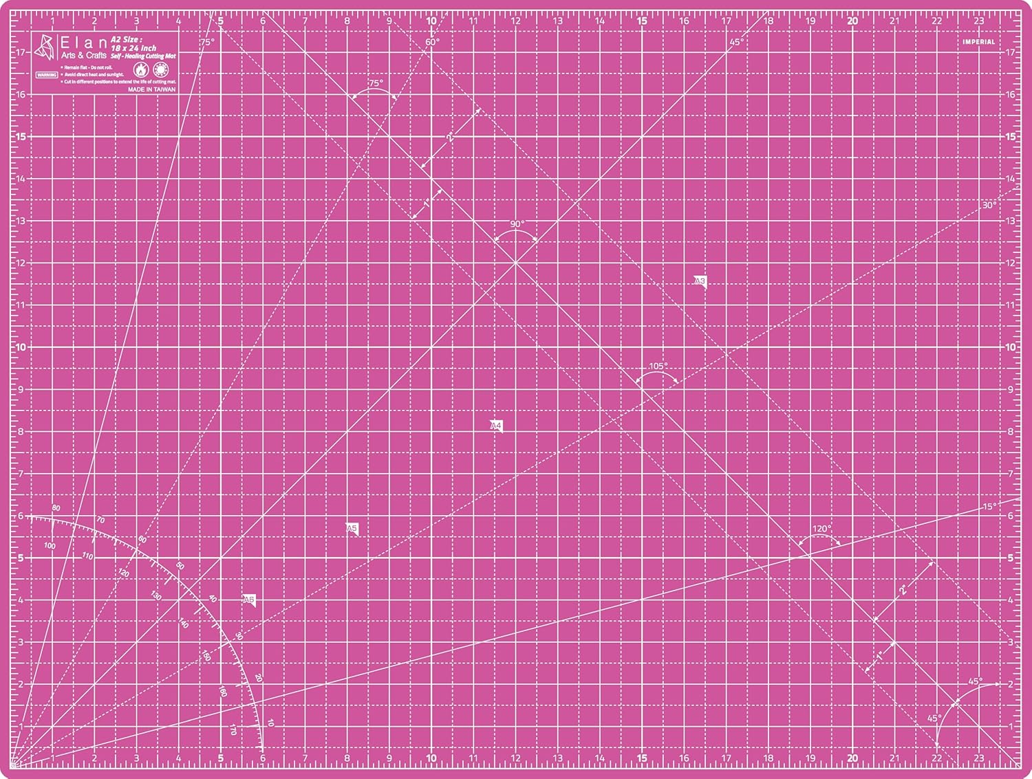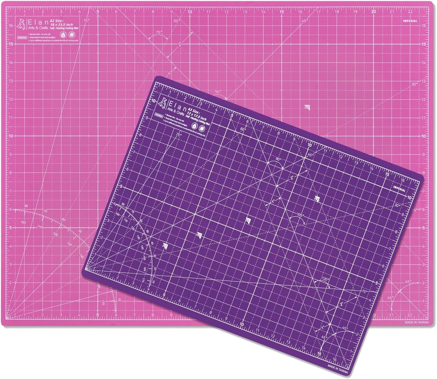 - COLOR & SIZE - Elan 18x24 cutting mat has two colors. This hobby mat is pink on one side and purple on the other. Elan hobby cutting mat is available with an imperial grid for sizes 36x48, 24x36, 18x24, 12x18, 9x12 inch.