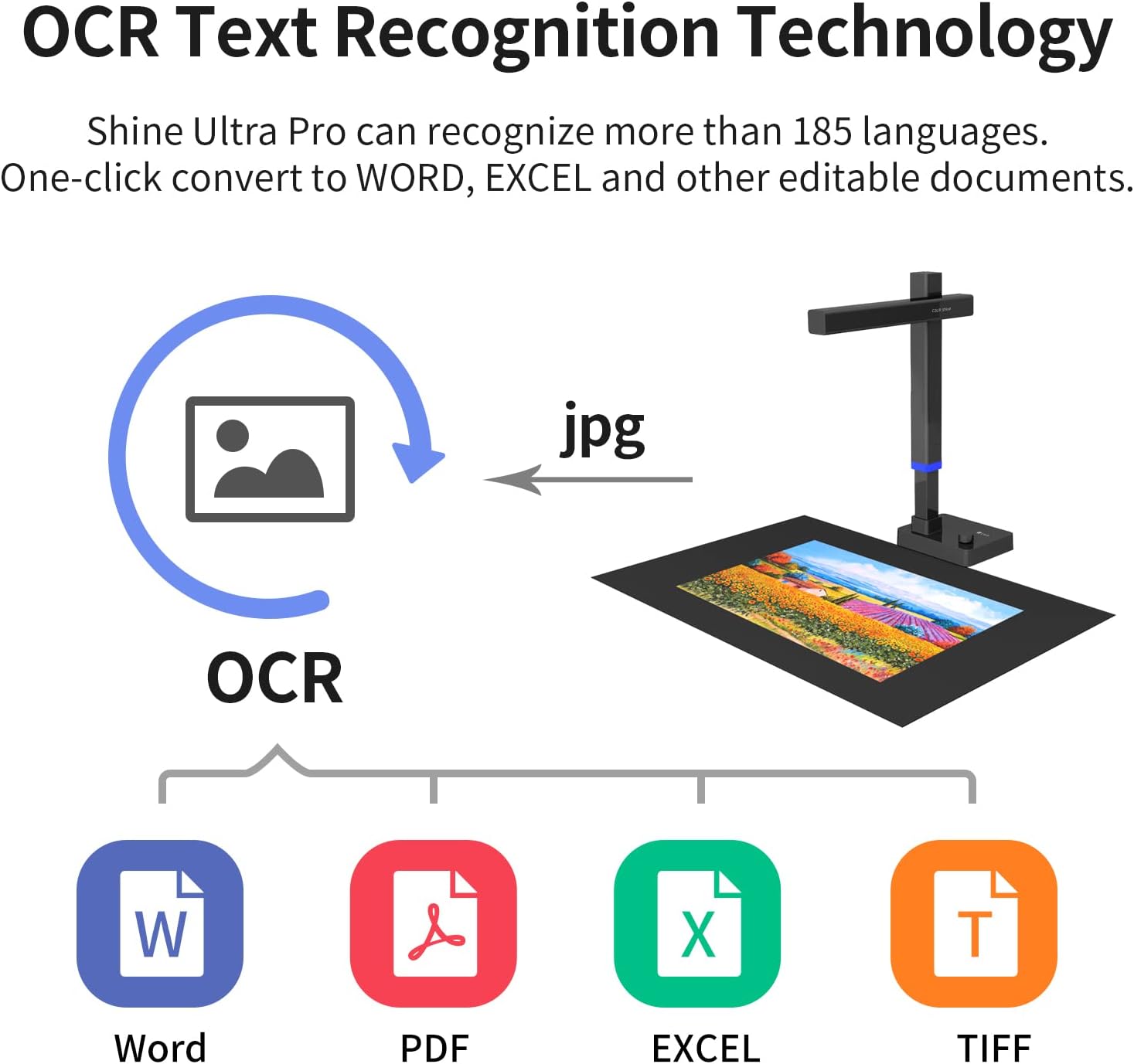 - Versatile Scanner: Shine Ultra Pro can flatten the 3D curved surface after pixel transformation to complete flattening of the book page. Digitize documents to JPG; PDF; Searchable PDF; WORD; EXCEL. Note: CZUR Ultra Pro can scan books while CZUR ET is recommended if professional level is needed