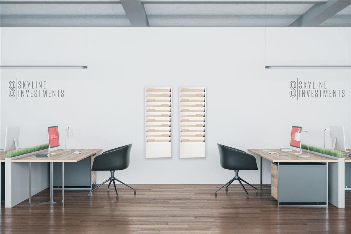 Displays2go File Holder Wall Mount, 11 Tiers, Letter Size, Magnet Receptive Steel - White (JMFF11WHT)