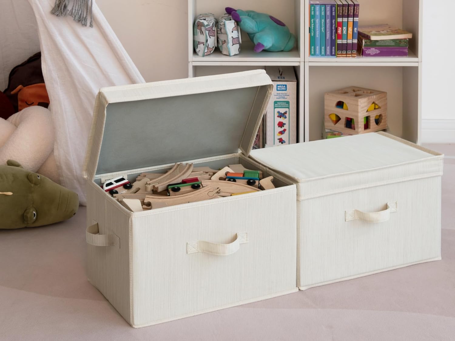 - Storage baskets with lids reinforced with heavy-duty boards can support a weight of up to 25 lbs.