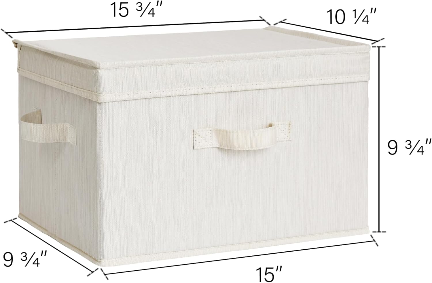 StorageWorks Fabric Storage Bins with Lid, Decorative Storage Boxes for Shelves, Stackable Closet Organizer Basket with Handles, Large, Mixing of Beige, White & Ivory, 2-Pack