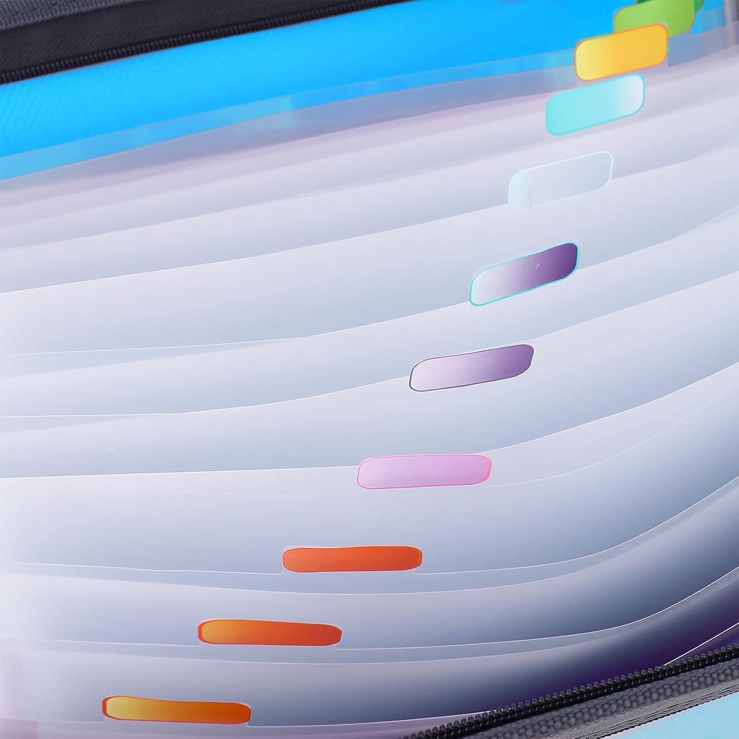 - Zipper Front Pouch & Colorful Labels: The front zipper pocket is perfect for putting pens, name cards, sticker paper and other frequently-used items. Accordion file folder comes with 27 pcs colorful sticky labels, which can help to distinguishing each pocket documents, convenient and quickly find out your needed files.