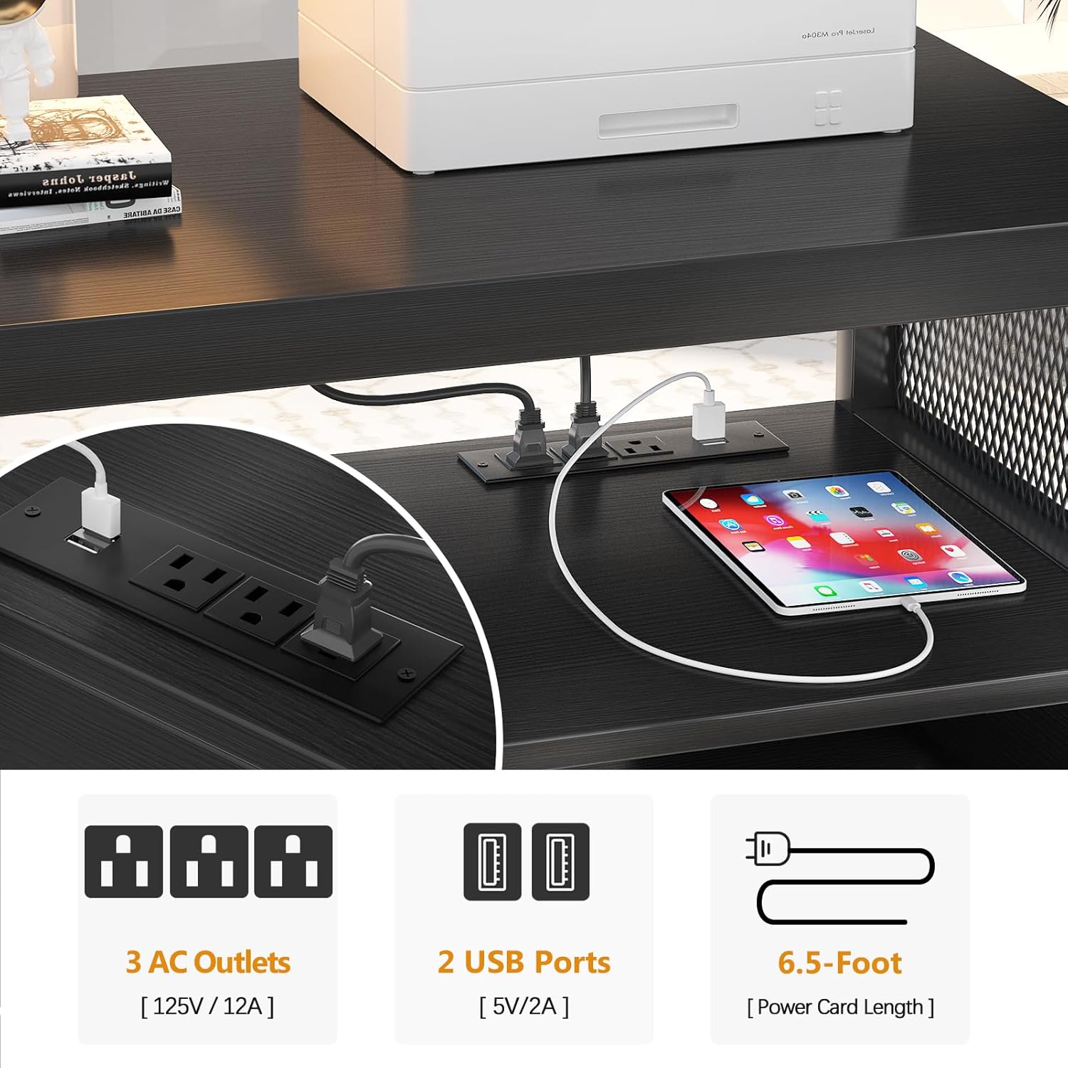 Unikito Lateral File Cabinet, Locking Office Filing Cabinets with Socket and USB Charging Port, Modern Rolling Printer Stand with Storage for A4, Letter Size and File Folders, Black