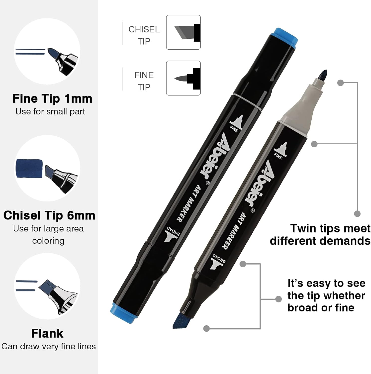 - FINE BULLET POINT & CHISEL TIPS: Artists love using our dual tipped master markers because of their accurate line control, superior color blending and the flexibility of a smooth paintbrush. Clean thick, thin or brushed lines can be achieved with ease.