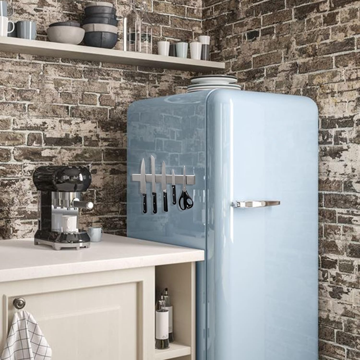 - This kitchen magnetic knife bar will be an irreplaceable assistant in your kitchen. Since the magnetic fridge knife holder is made of 304 stainless steel, you can easily wash it. This knife strip magnet comes with step-by-step illustrated mounting instructions