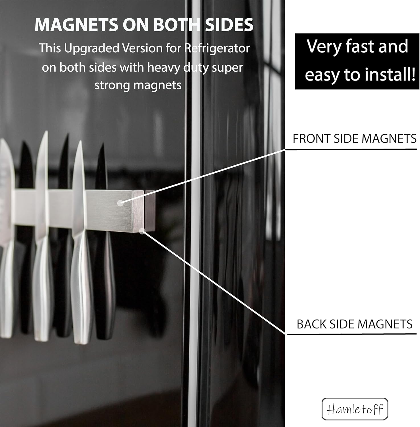 - Fridge knife magnetic strip – Upgraded version of the knife magnetic strip, which does not require special installation. High quality 304 stainless steel magnetic knife holder with super strong double-sided magnet. Fridge mounting - no installation required. Just place it to the fridge wall and you're done!