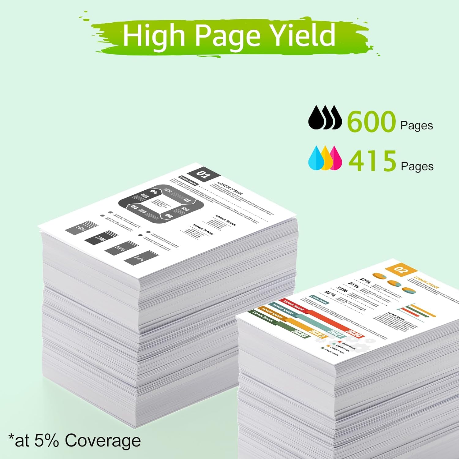 - High-Capacity Printing: Black cartridge yields ~600 pages | Tri-color delivers ~415 pages (5% coverage, A4/Letter). Achieve 40%+ savings compared to original HP cartridges