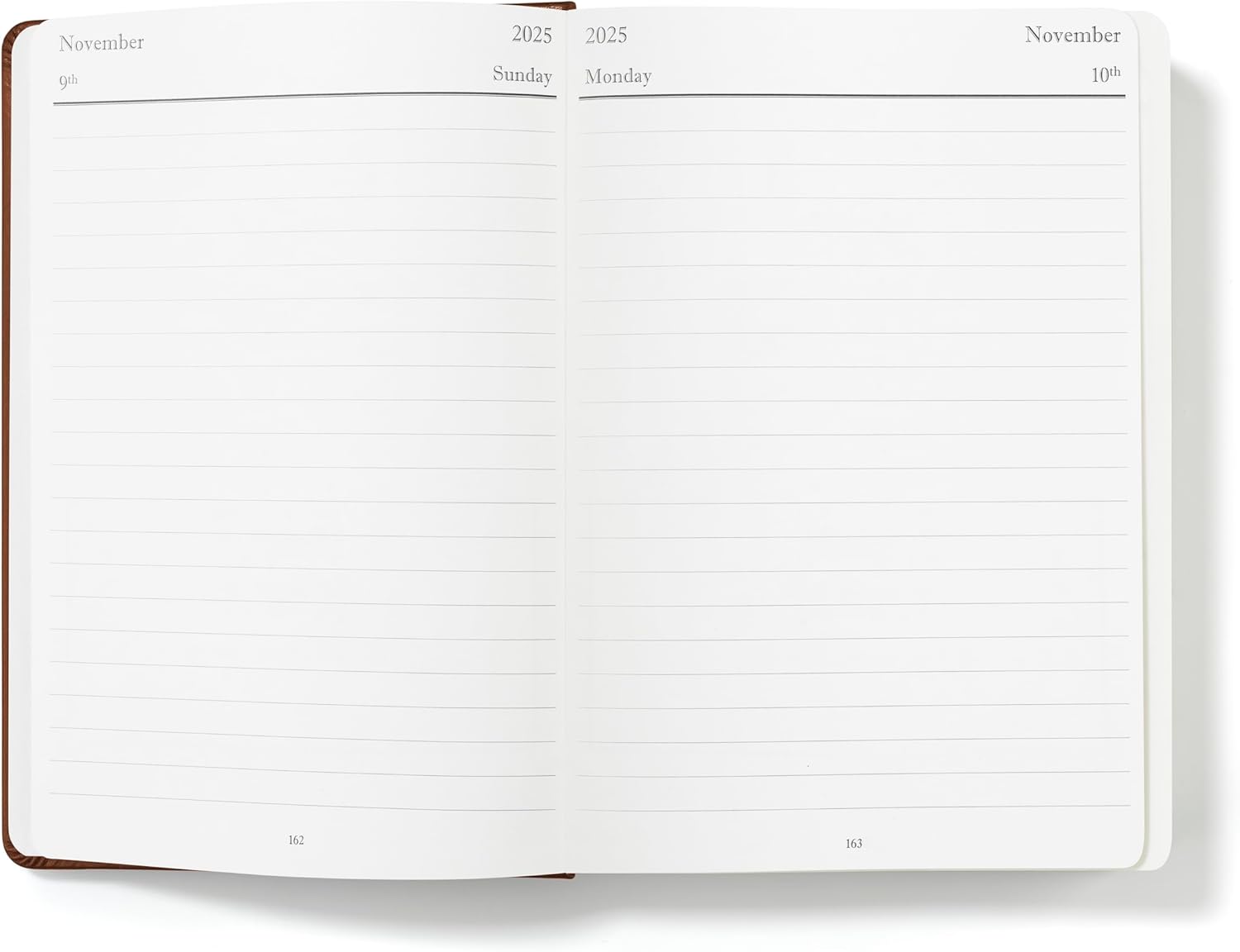 - Spacious Daily Pages: Detailed daily plans with full-page entries.