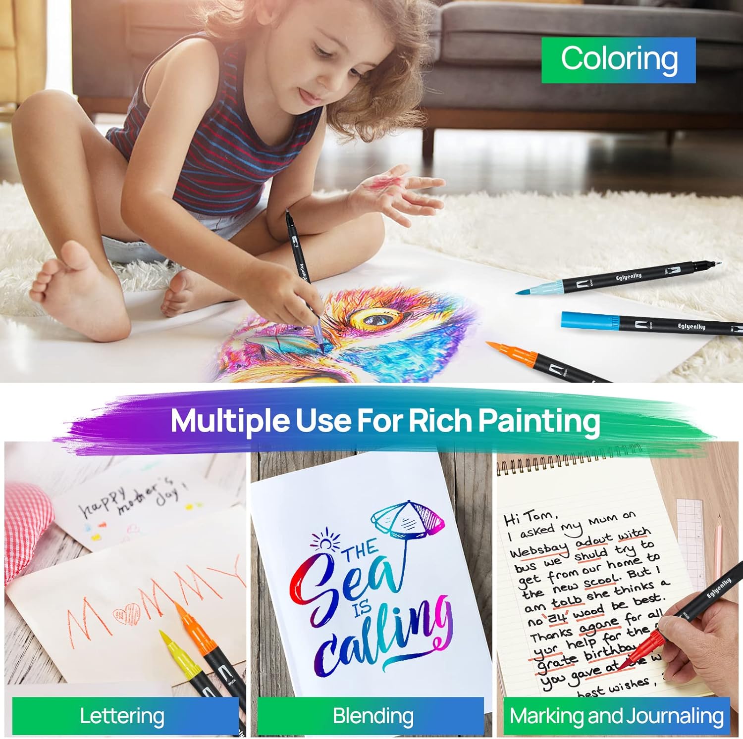 - PRODUCT CREATIVITY - Everyone is the master of life to discover and create beauty, so the art dual tip marker set is an indispensable tool at your hand for sketches, coloring book, calligraphy, drawing, lettering, journaling, note taking, highlighting, rendering, card making, watercolor illustrations. The transparent plastic packaging is convenient for storage, and the brush marker pens set is also a perfect gift to be chose at anniversaries, birthdays, graduations.