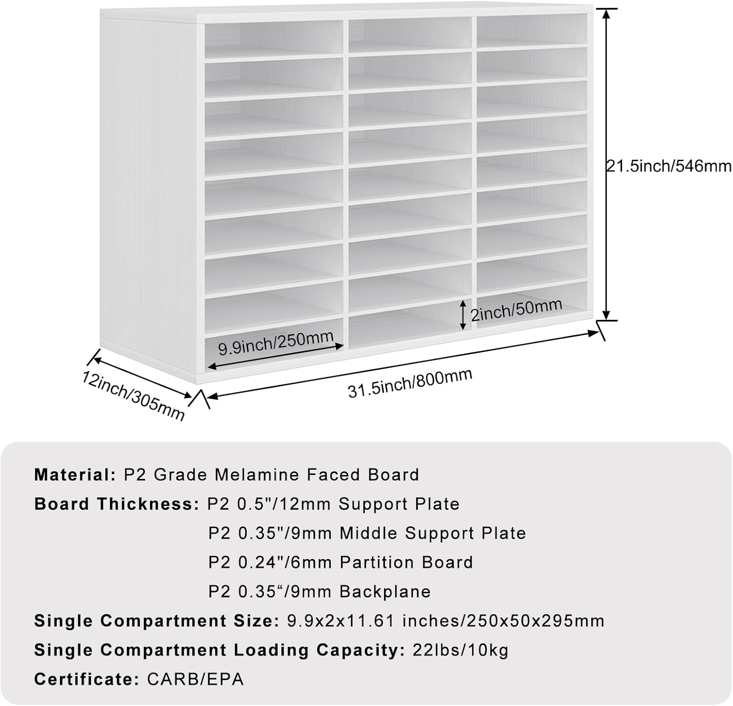 PAG Mail Sorter Organizer, Wood Literature Organizer, Student Mailbox for Classroom, Desktop Bill Paper Organizer for Office Home School, 27 Compartments, White