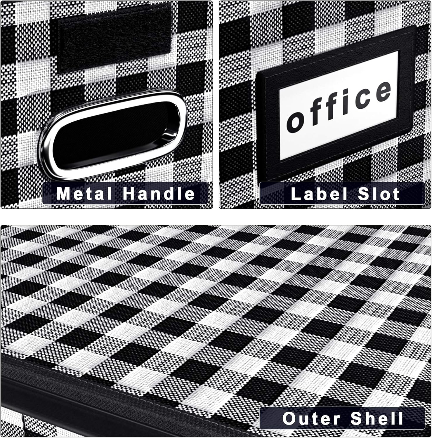 - Collapsible Multifunctional Filing Storage Organizer - The outer box with linen fabric can be dustproof, inside and the bottom support is made of thickened cardboard, which is environmentally friendly and not easily deformed. The cover with Velcro not only allows us to cover the file box easily, but provides more storage space for the file. It also acts as a small filing cabinet for tax documents, legal files and other documents storage. When we are not using it, we can fold it up to save space.