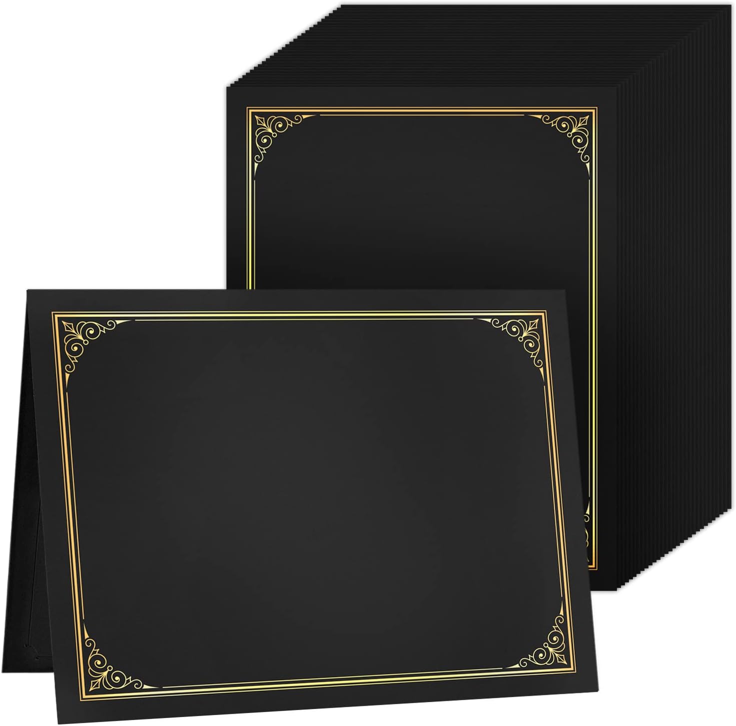 SUNEE Certificate Holders(Black, 30 Packs, New Pattern), Diploma Covers Gold Foil Border, for Letter Size 8.5x11 Certificates, Cardstock, Document Papers