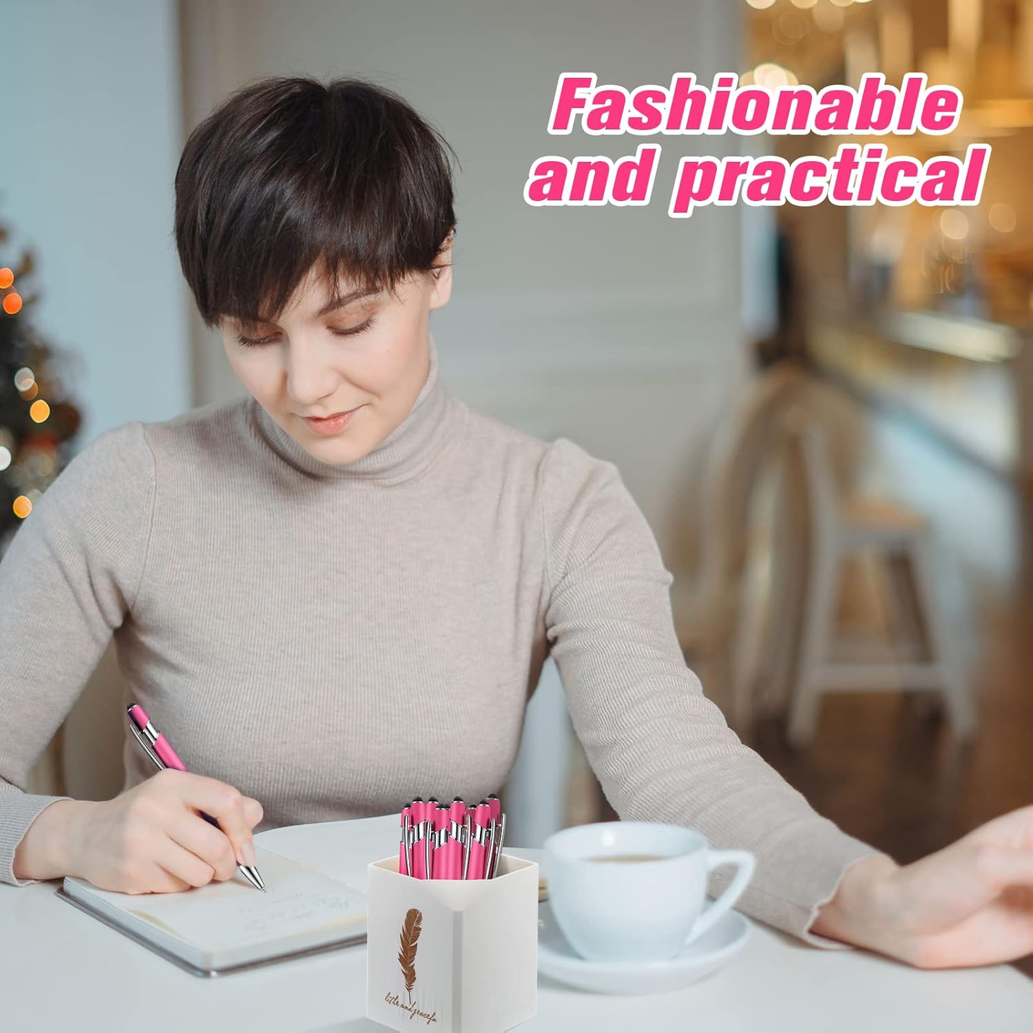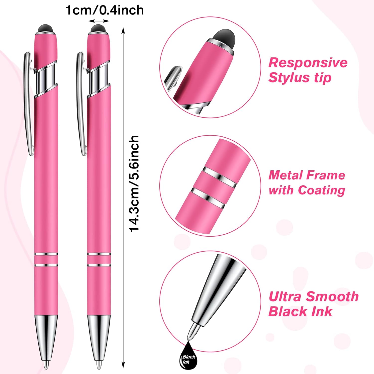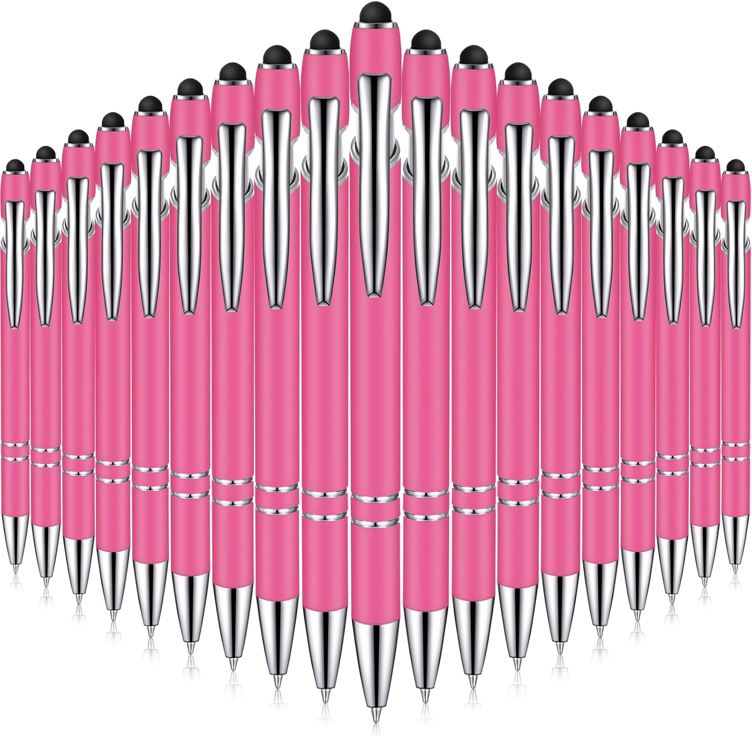 Zonon 38 Pieces Rubberized Ballpoint Pen with Stylus Tip Stylish Metal Pen Capacitive Styli with Soft Rubberized Grip, Black Ink for Most Devices(Hot Pink)