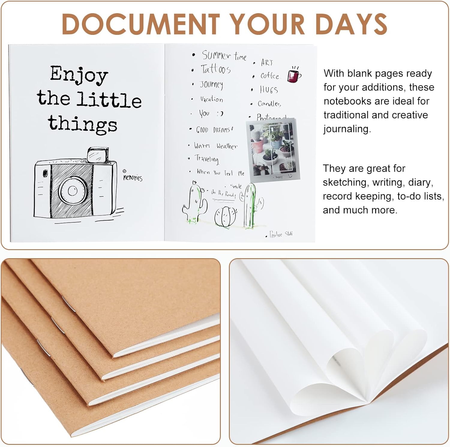 - Product Application: be prepared to take notes, doodle, or journal about your day with this set of 100 blank notepads; The blank pages provide you with the freedom to use the notebooks in any way you choose, whether you use them as daily journals, places to practice hand lettering or drawing, or places to take notes for classes and meetings; These 100 notebooks will last a long time, take them anywhere you go