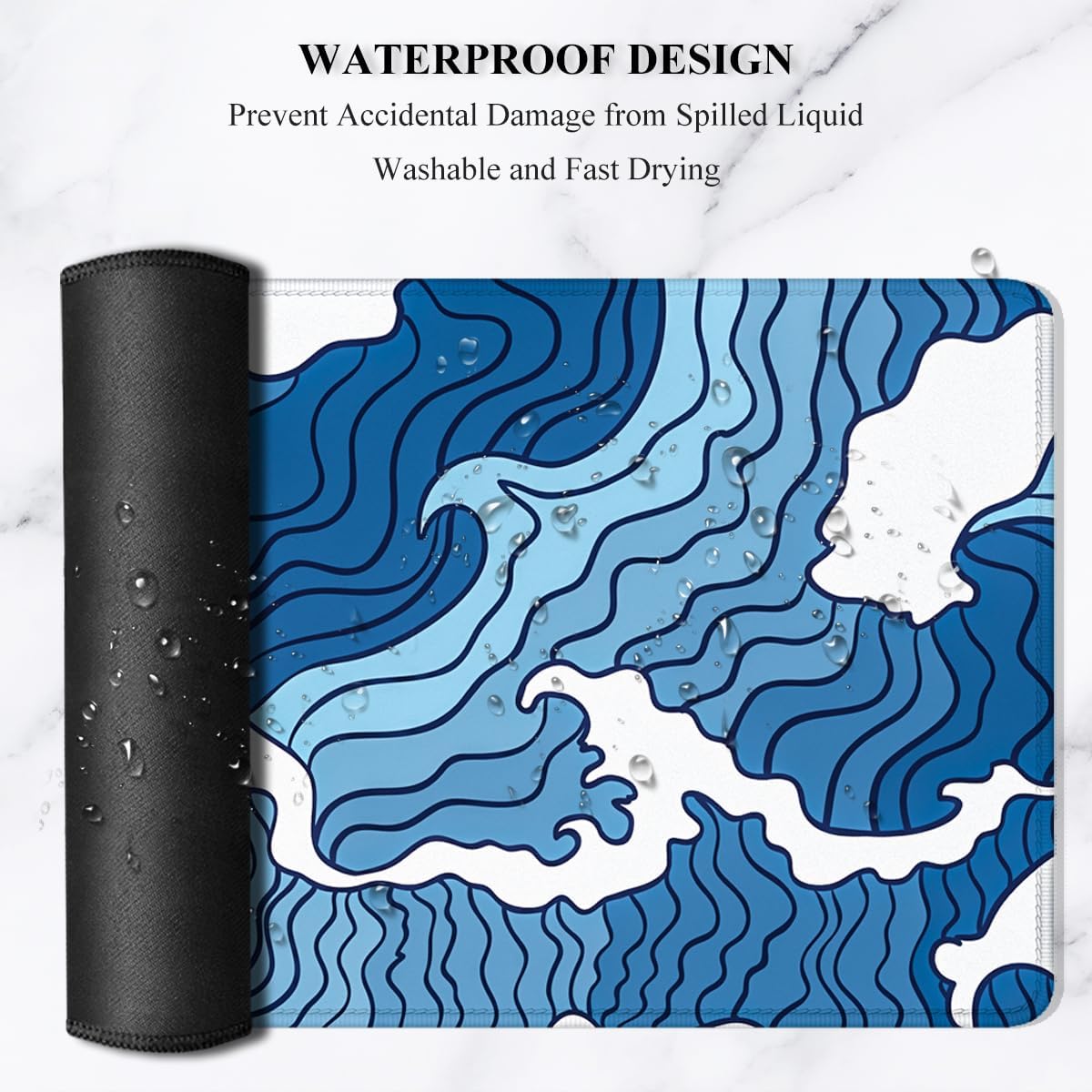Auhoahsil Large Mouse Pad, XXL Gaming Mousepad, Desk Mat for Desktop, Thick Rubber, Big & Long Size, Stitched Edges, Full Desk Pad for Laptop & Computer, Extended 31.5 x 11.8 in, Janpanese Wave