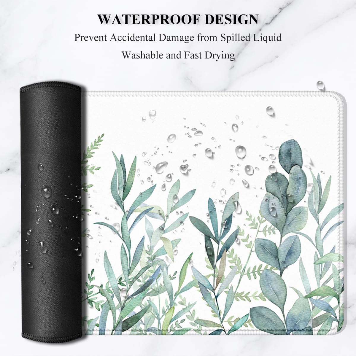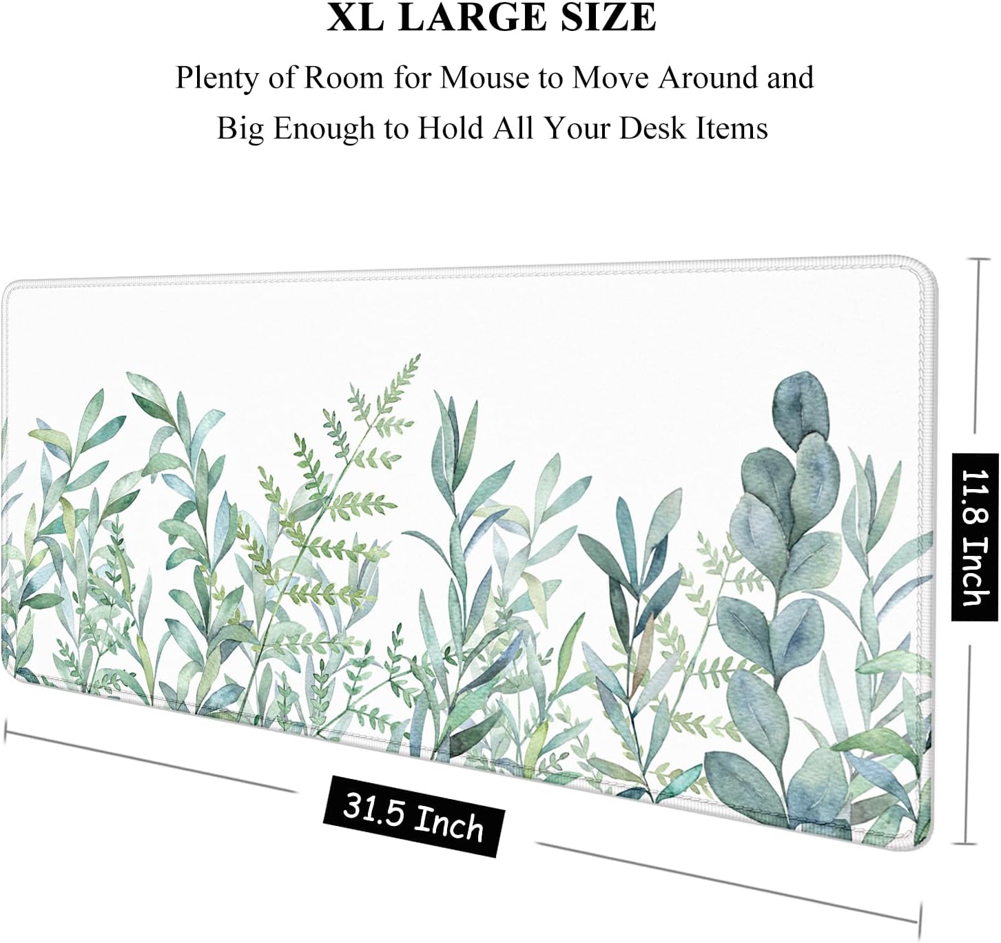 Auhoahsil Large Mouse Pad, XXL Gaming Mousepad, Desk Mat for Desktop, Thick Rubber, Big & Long Size, Stitched Edges, Full Desk Pad for Laptop & Computer, Extended 31.5 x 11.8 in, Minimalist Leaves