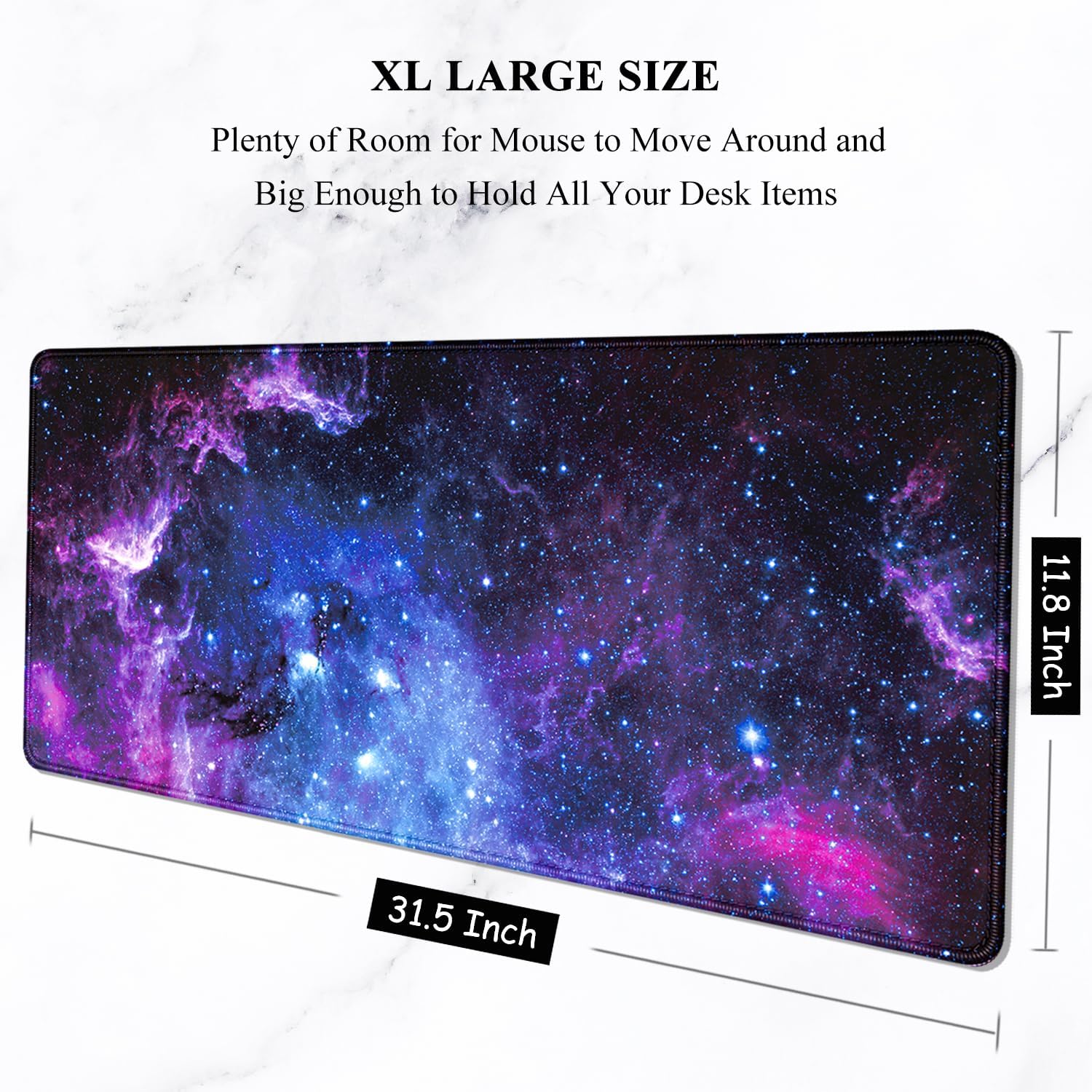 Auhoahsil Large Mouse Pad, XXL Gaming Mousepad, Desk Mat for Desktop, Thick Rubber, Big & Long Size, Stitched Edges, Full Desk Pad for Laptop & Computer, Extended 31.5 x 11.8 in, Amazing Galaxy