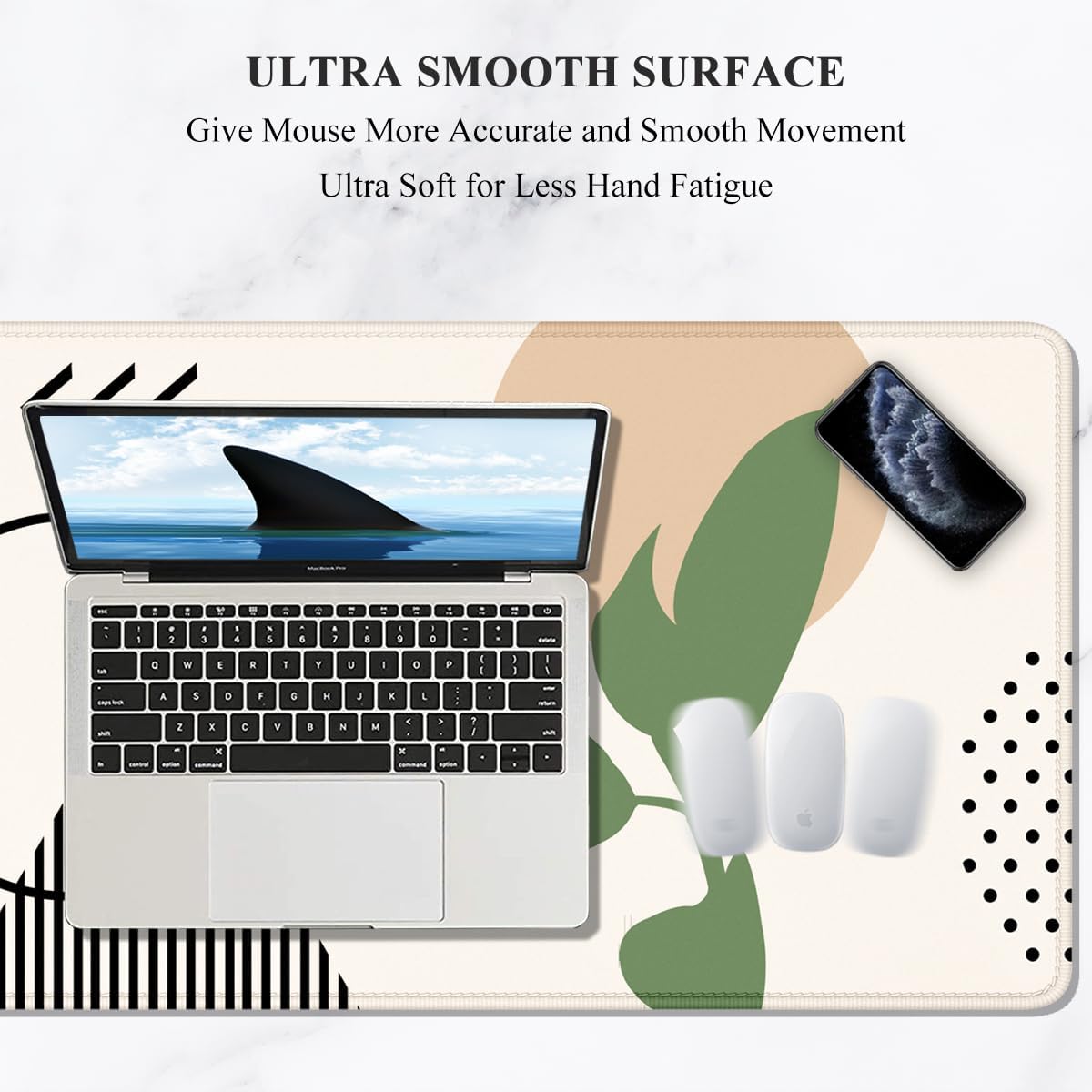 Auhoahsil Large Mouse Pad, XXL Gaming Mousepad, Desk Mat for Desktop, Thick Rubber, Big & Long Size, Stitched Edges, Full Desk Pad for Laptop & Computer, Extended 31.5 x 11.8 in, Boho Abstract Art