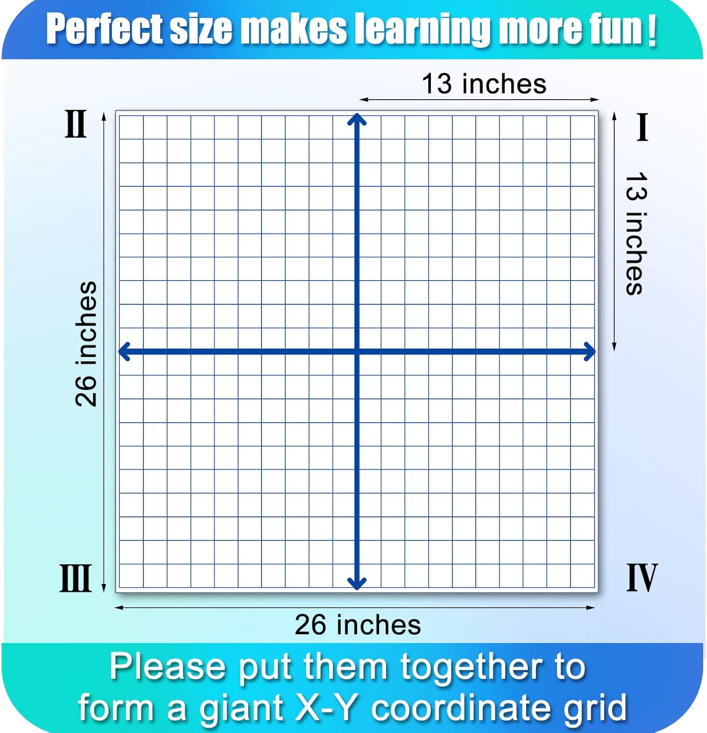 - Size Dimensions: each magnetic grid measures approx. 32.5 cm/ 13 inches and 4 pieces magnetic grids form a complete coordinate axis, measuring about 26 x 26 inches, represents quadrant I, II, III, and IV; And each has 20 squares in a row, 20 lines, a total of 400 squares, there is plenty of writing space and large size, which can be seen from far away