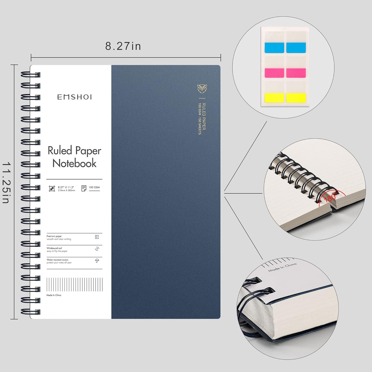 - 300 Pages Thick Notebook: EMSHOI lined notebook offers 300 pages (150 sheets) in A4 size (11.2" x 8.27"), providing ample space for all your notes in one convenient place, eliminating the need for multiple journals. Each page features 7 mm line spacing for writing