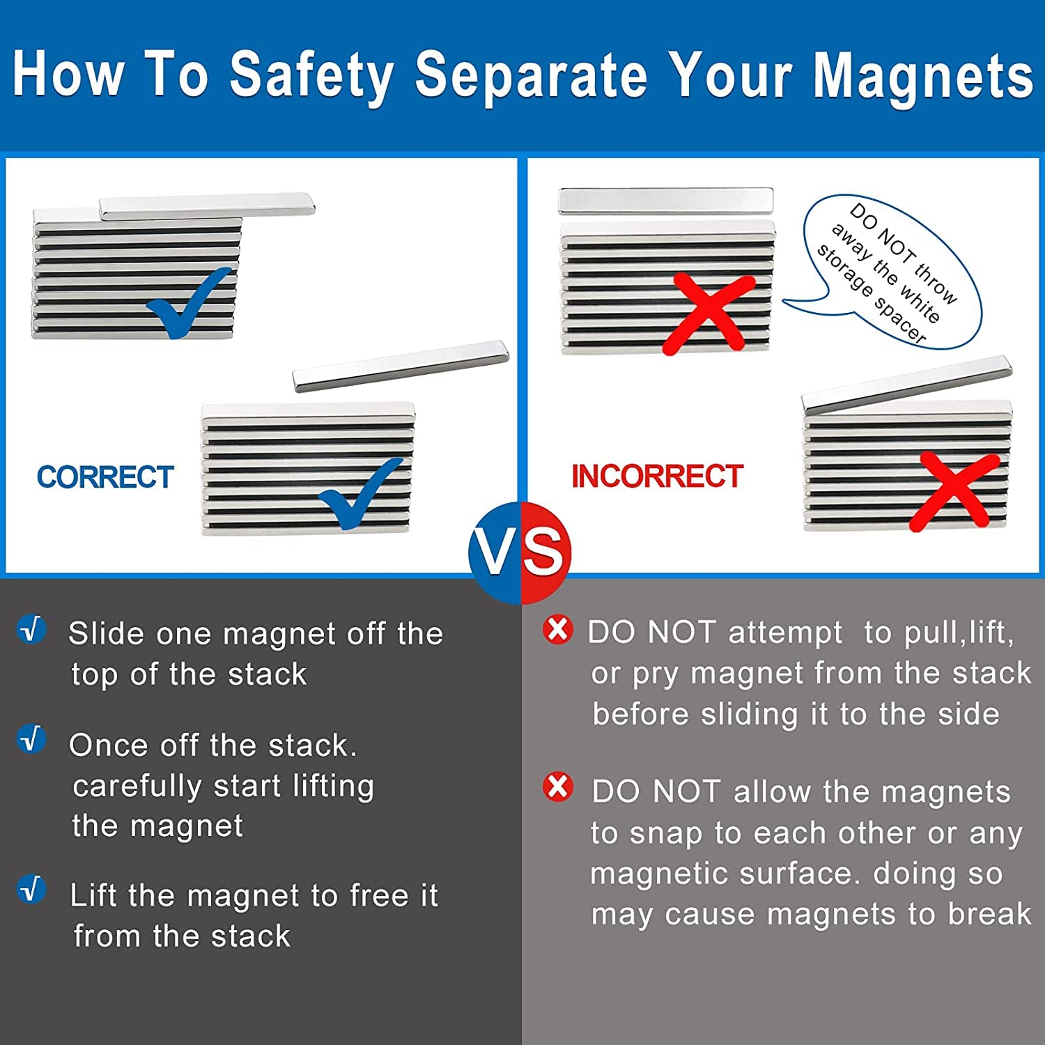 - 【ATTENTION PLEASE】 - The Bar Magnet is Very Fragile, It is Forbidden to Collide with Other Metal Objects (Including Another Magnets), So Be Careful when You are Trying Separte Them !