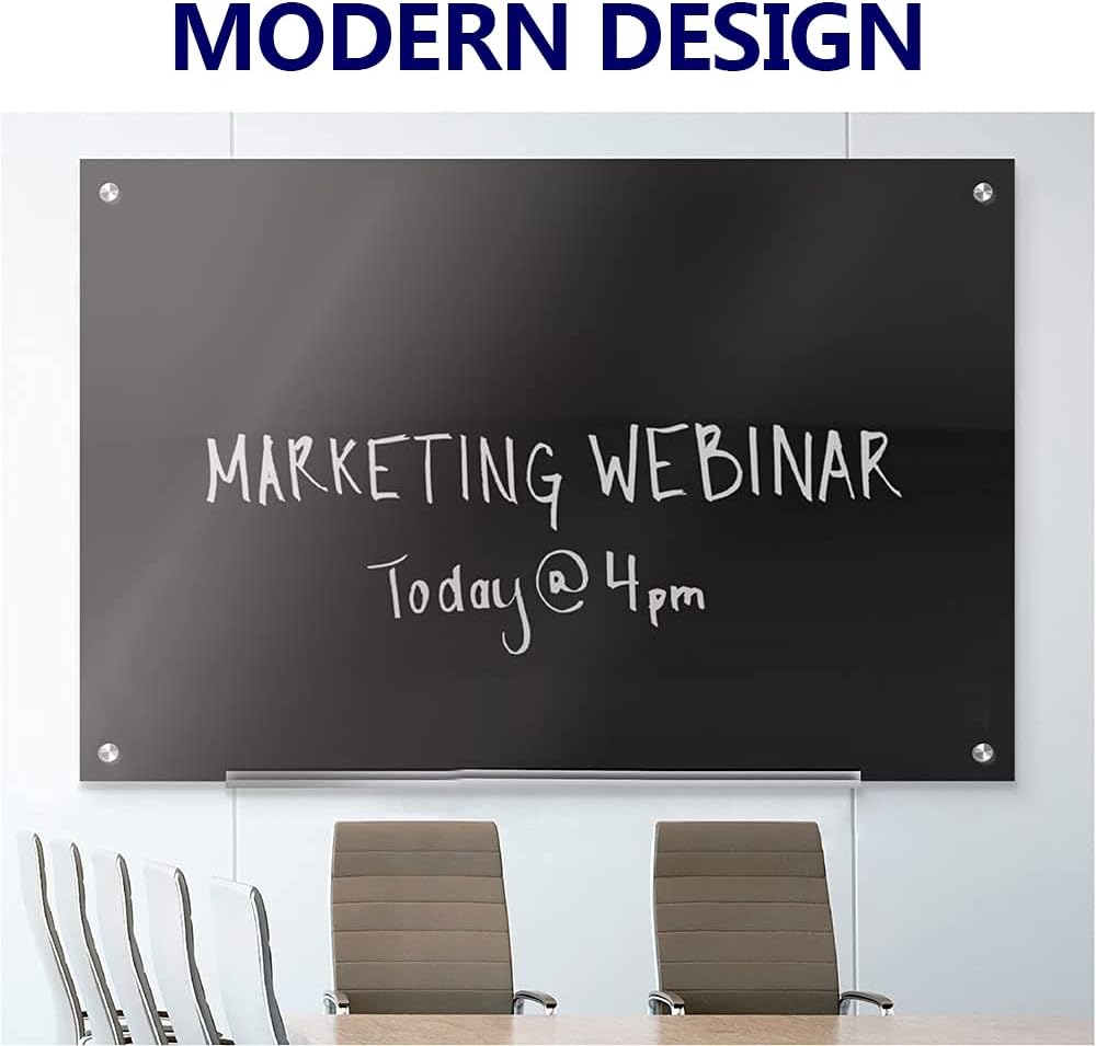 Black Glass Board Frameless Tempered Glass Dry Erase Board with Marker Tray for Interactive Office, Wall Mounted Frosted Glass Board, 60" x 40", Black