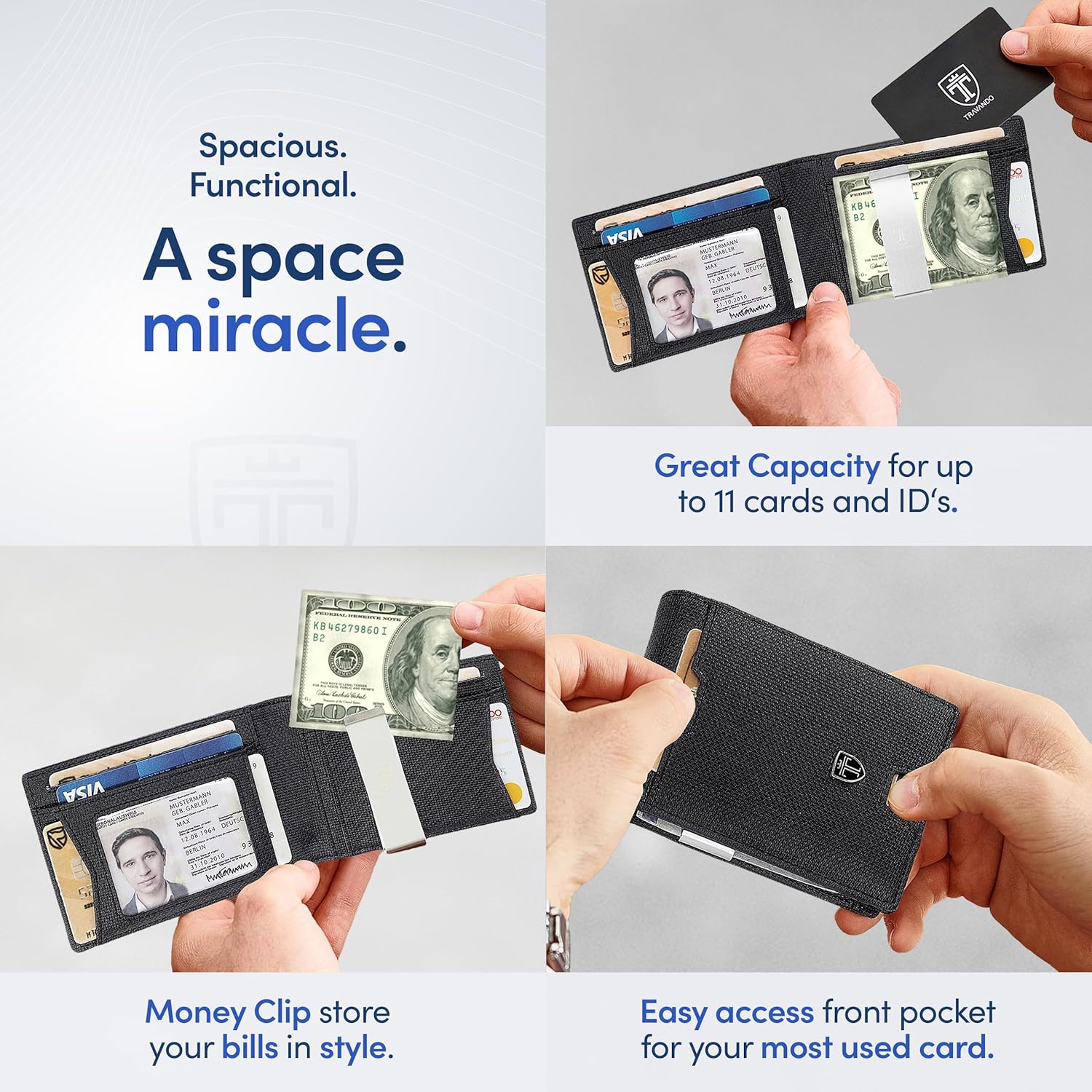 TRAVANDO Mens Wallet with Money Clip AUSTIN RFID Blocking Bifold Credit Card Holder for Men with Gift Box