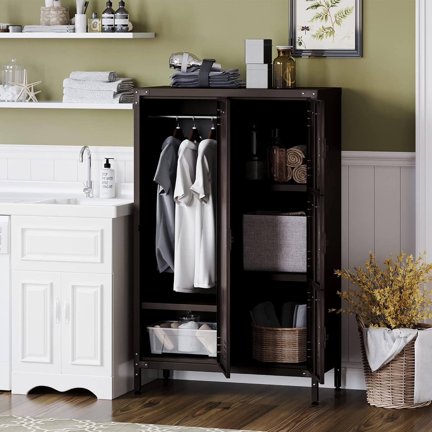 - 【Metal Material】Storage cabinet is made up of full steel ,rugged and not easily deformed, plate adopted environmentally powder coated finish, Moisture proof ,capacity to resist corrosion and rust, Can be used for a long time.
