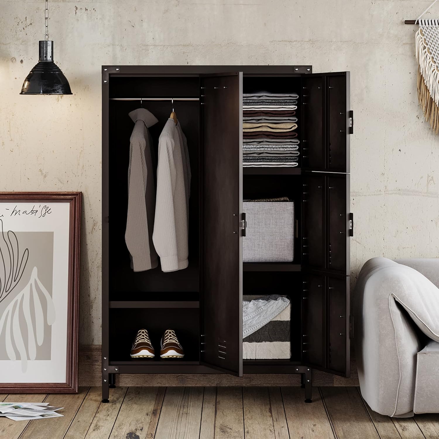 Letaya Metal Locker Storage Cabinet,55" Steel Retro Wardrobe,4 Doors Lockable,Adjustable Feet Organizer Locker for Employees Home Office School Gym (4 Door)