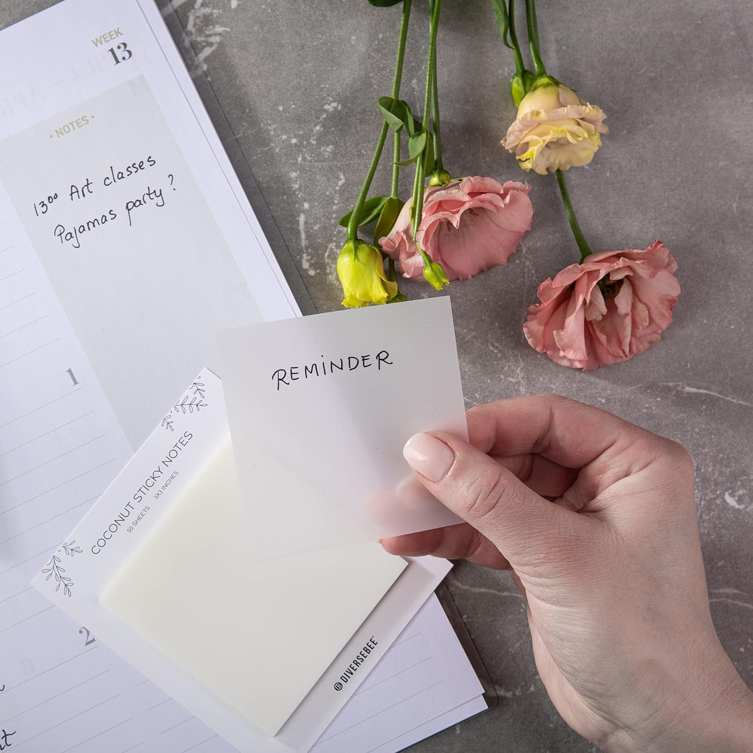 DiverseBee 50 Sheets Pastel Transparent Sticky Notes, 3x3” Clear Sticky Tabs, Translucent Page Flags Book Markers Stickers, Planner Accessories, Bible Journaling Study Office School Supplies (Coconut)