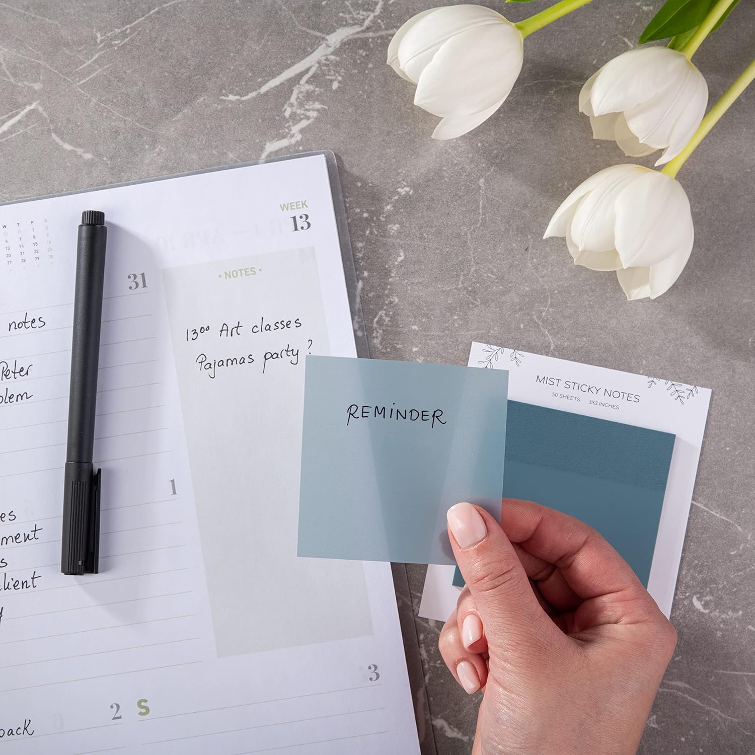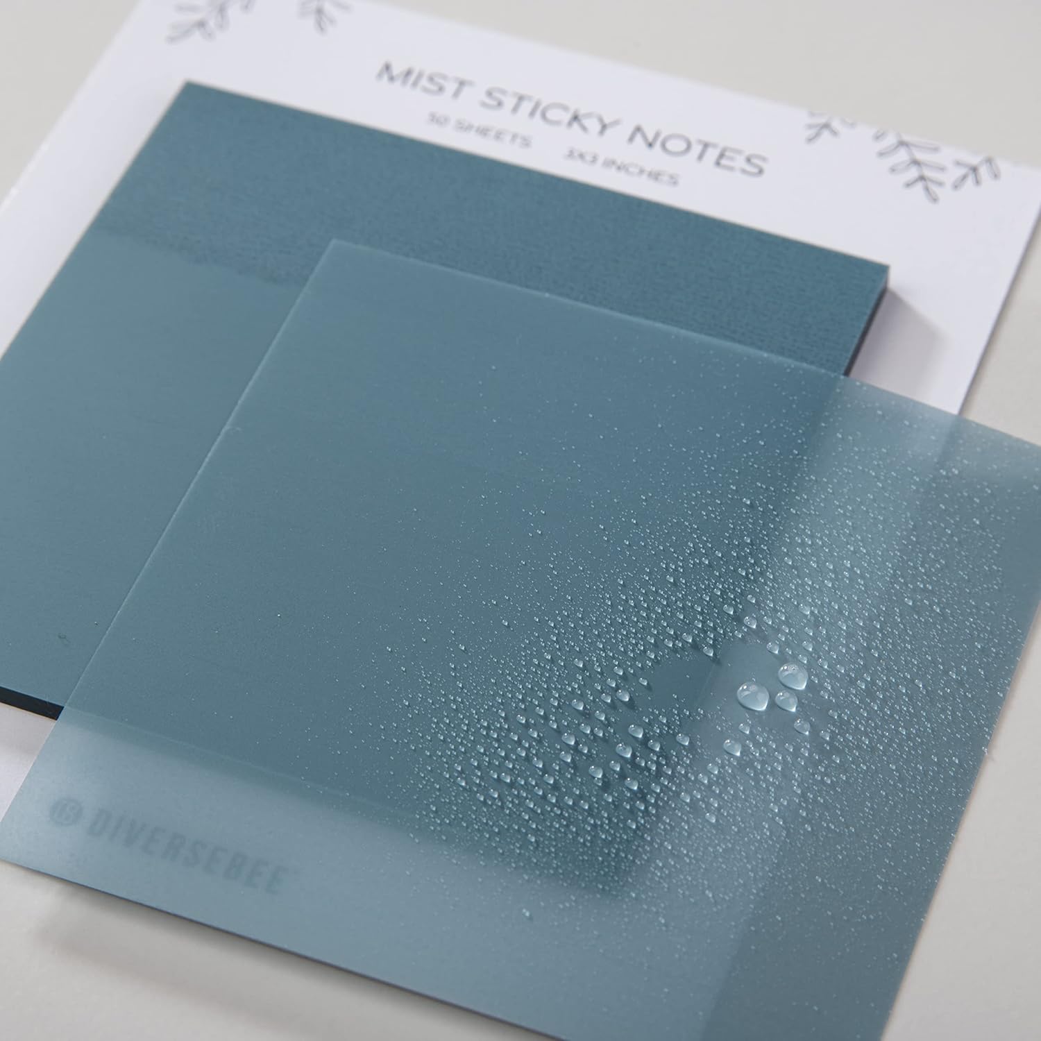 DiverseBee 50 Sheets Pastel Transparent Sticky Notes, 3x3” Clear Sticky Tabs, Translucent Page Flags Book Markers Stickers, Planner Accessories, Bible Journaling Study Office School Supplies (Mist)