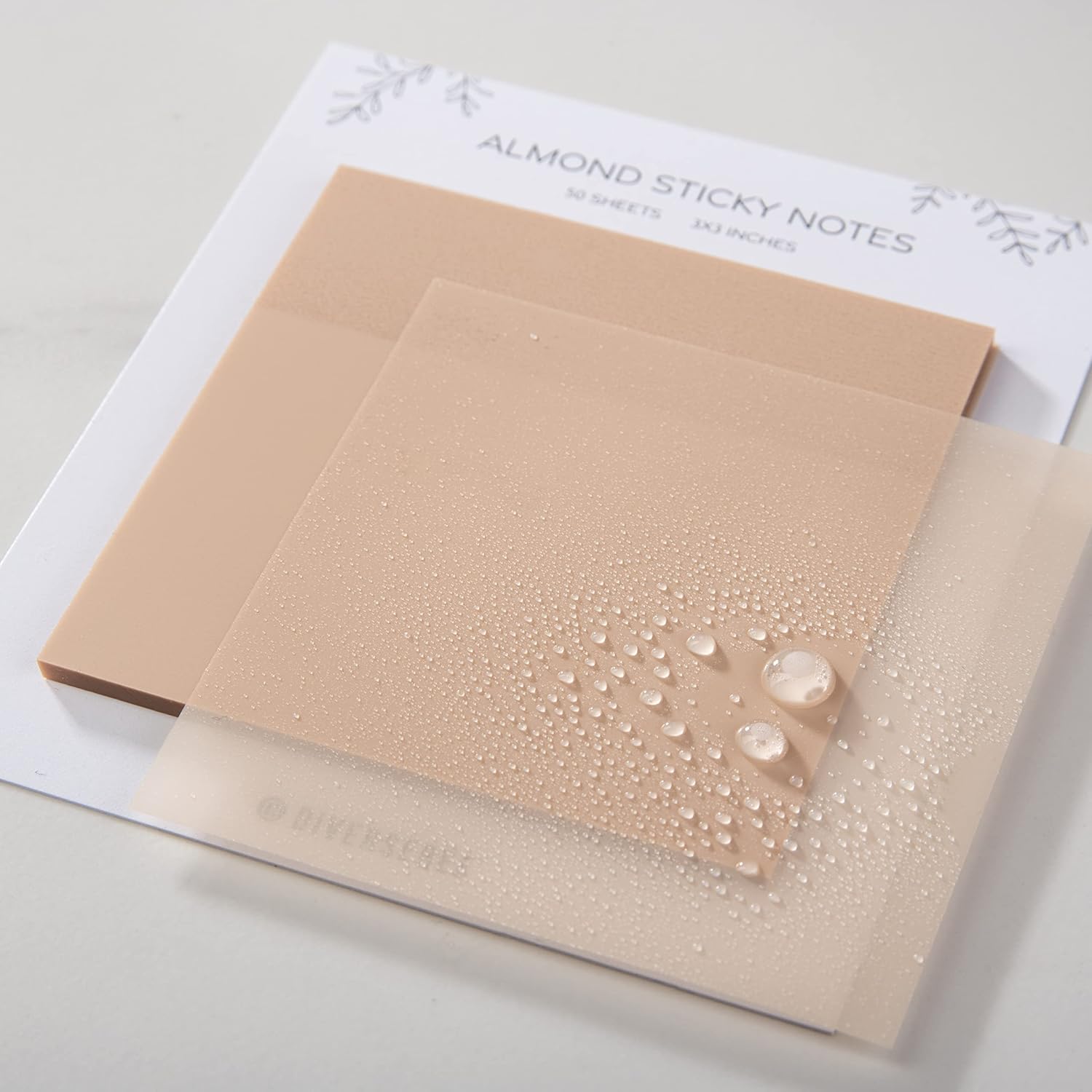 DiverseBee 50 Sheets Pastel Transparent Sticky Notes, 3x3” Clear Sticky Tabs, Translucent Page Flags Book Markers Stickers, Planner Accessories, Bible Journaling Study Office School Supplies (Almond)