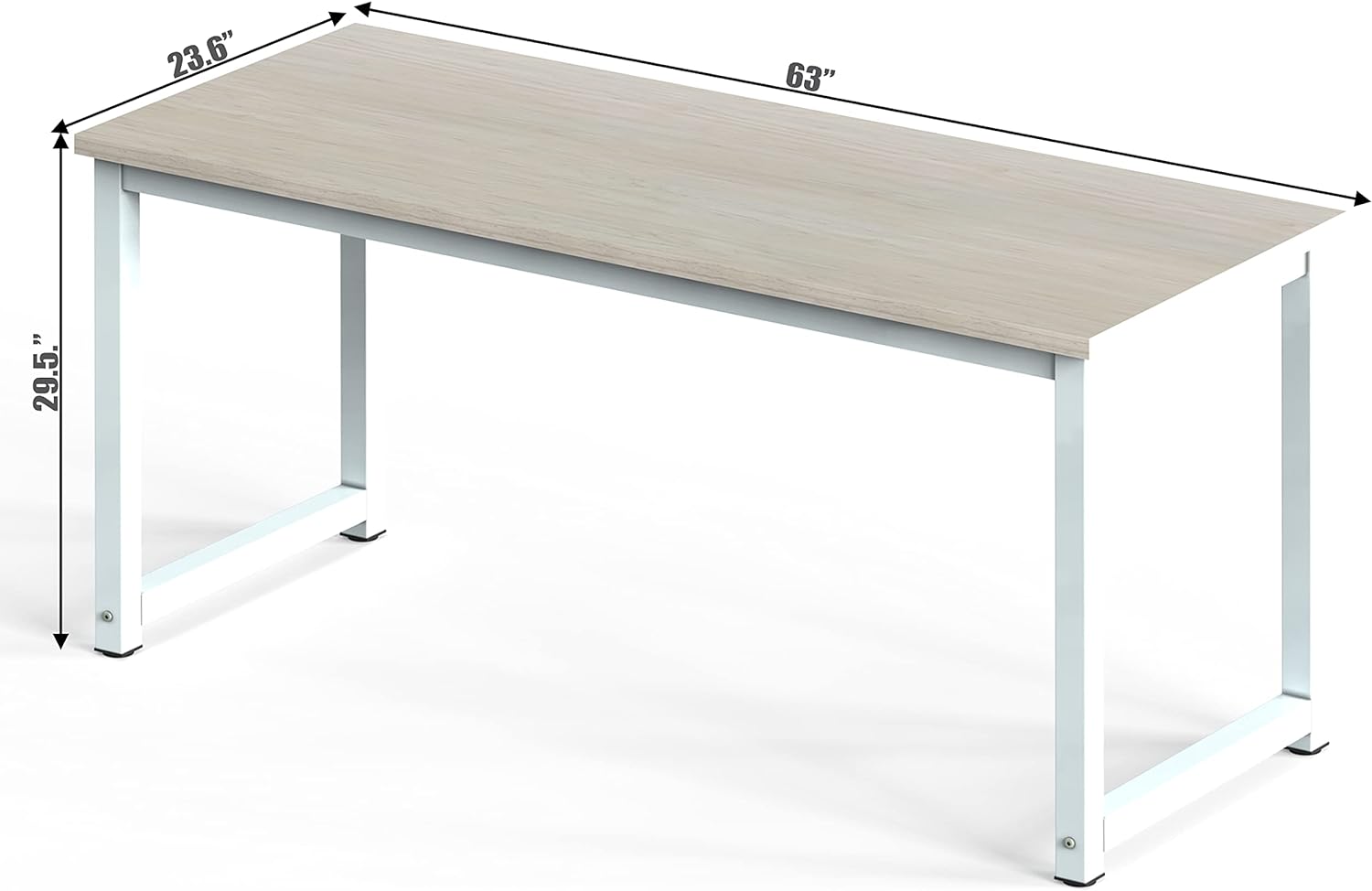 NSdirect Large Office Desk for Home Office, Large 63" Computer Desk Table, Wide Writing Study Desk for 2 Person, Metal Sturdy Frame Thicker Steel Legs, (White Oak, 63"L x 23.6"W x 29.5"H)