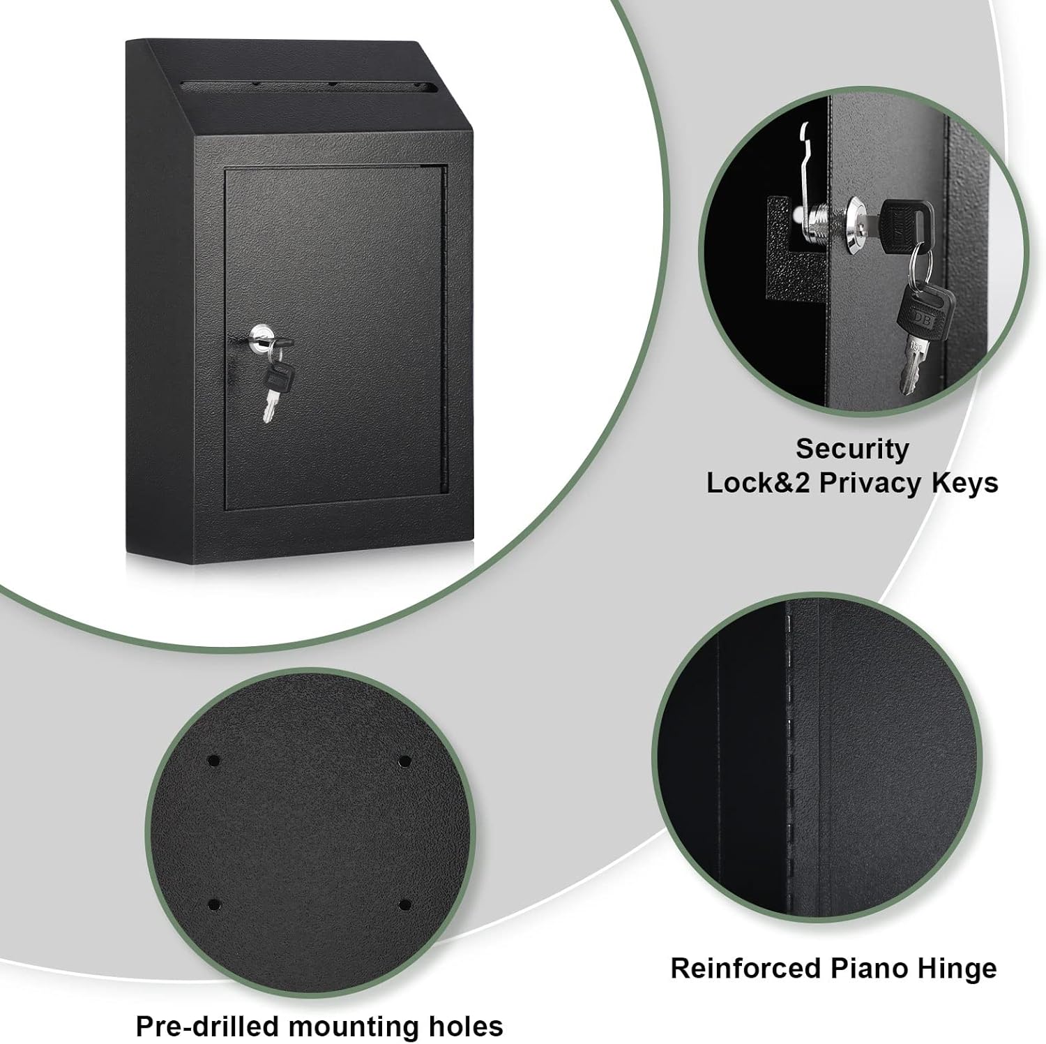 - 【DURABLE MATERIAL】- xydled’s Drop Box is made of powder-coated heavy-duty steel to ensure durability and long life, and provide high-security protection and safe storage for your mails. The black textured surface is not only scratch-resistant and modern as well as beautiful.